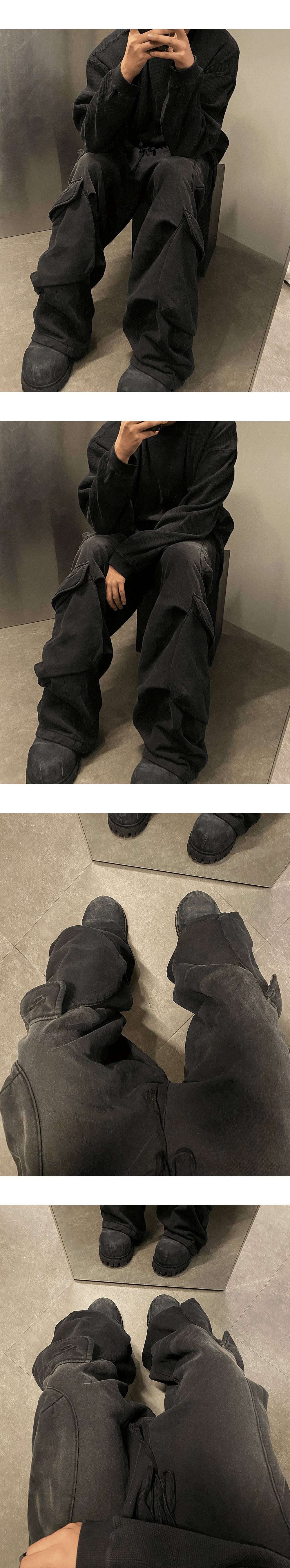 언더마이카 무.78 안티 Fxxking 로고 플레이 브러쉬 워시드 멀티 카고 팬츠 블랙