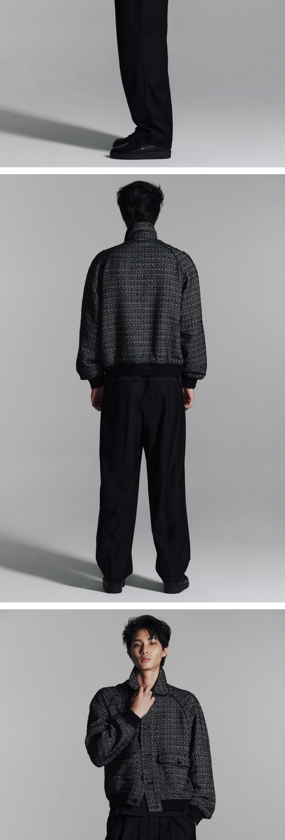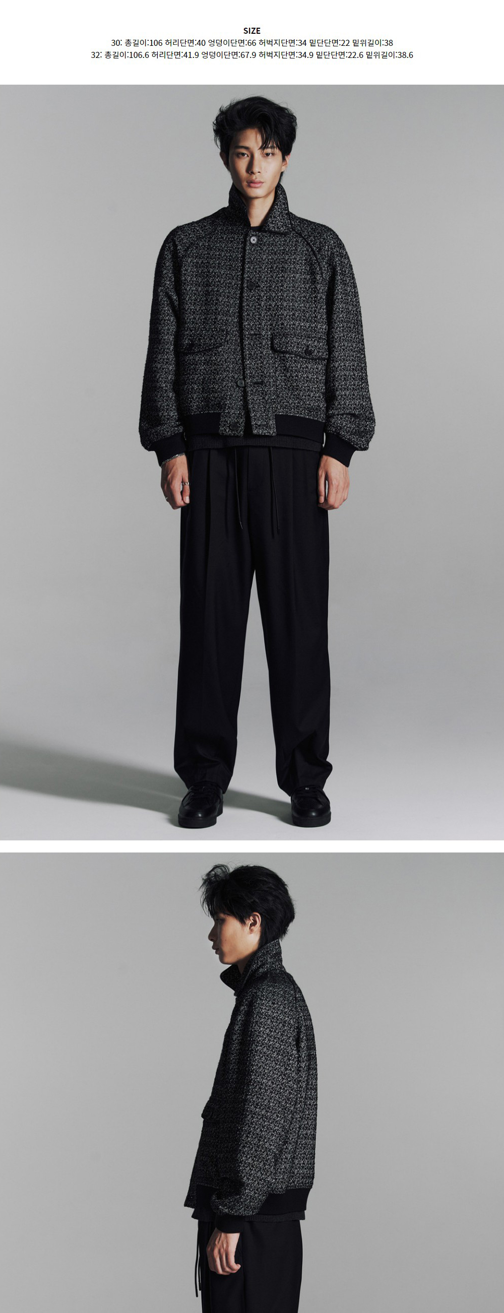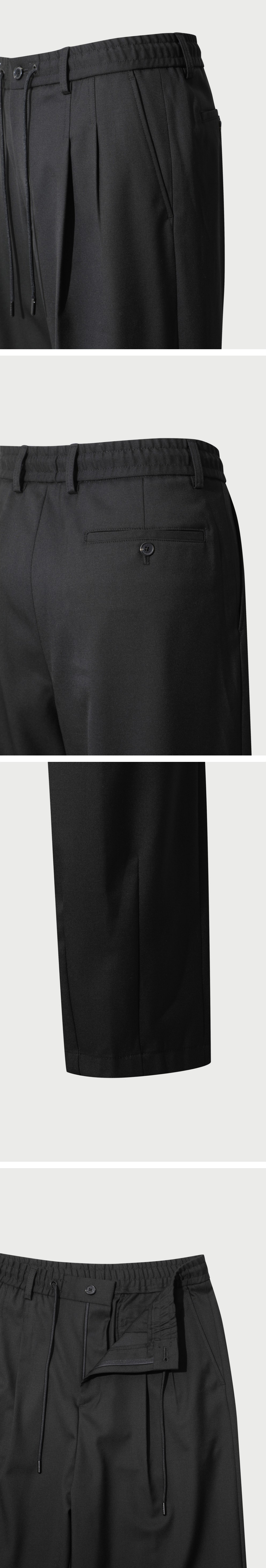 이로 다트 울 혼방 투턱 테이퍼드 핏 팬츠 블랙