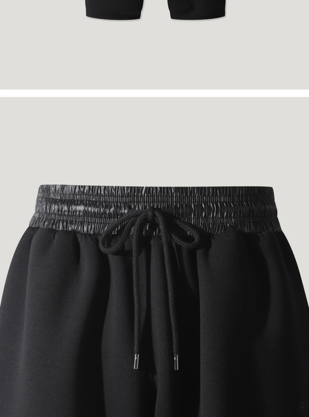 이로 밴딩 배색 와이드 조거팬츠 블랙