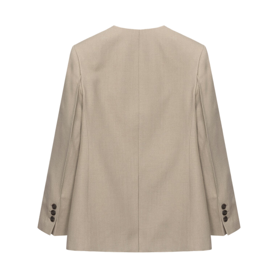 (W) On&On Collarless Slit Stitch Jacket Dark Beige