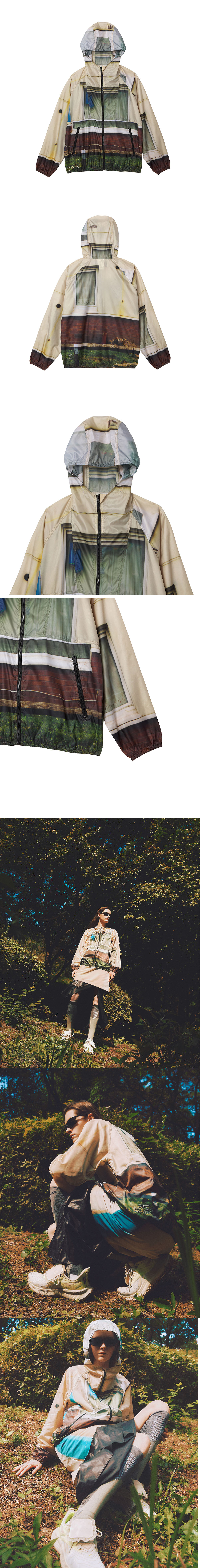 Light weight fabric YKK zipper Logo embroidery London Photo printing Polyester 100% 경량 원단 사용 YKK 지퍼 후드와 뒷면에 자수 로고 런던 배경 포토 프린팅 Made in South Korea Washing Information Machine wash cold With like colours Do not bleach