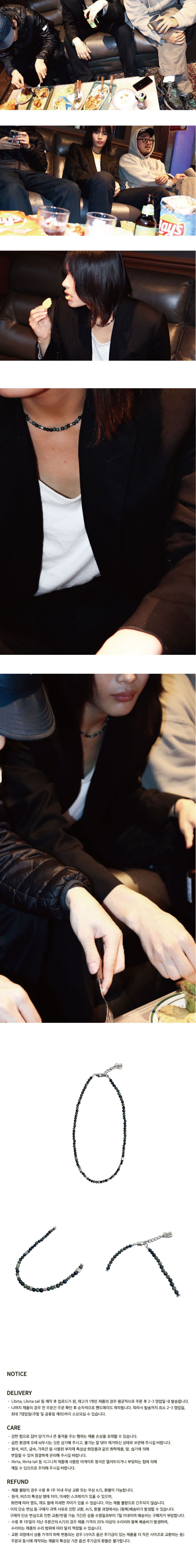원석, 비즈, 금속, 가죽끈 등 사용된 부자재 특성상 화장품과 같은 화학제품, 땀, 습기에 의해 변질될 수 있어 청결하게 관리해 주시길 바랍니다.