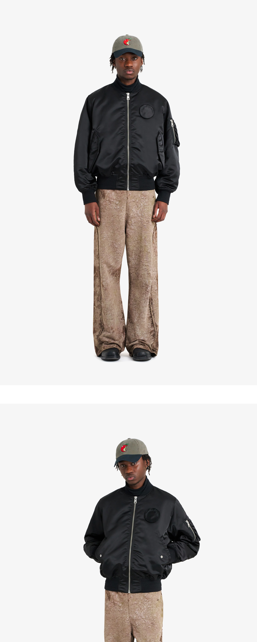우아한 광택감과 셔링으로 은은하게 존재감을 발하는 에뛰드 스튜디오의 나일론 봄버 자켓입니다. - 오버사이즈 핏 - 좌측 가슴의 탈부착 가능한 자수 패치 - 로고가 각인된 메탈 지퍼 - 내부 포켓 존재 - 내부 'Études Studio' 자카드 안감 * 모델: 185cm, 48사이즈 착용