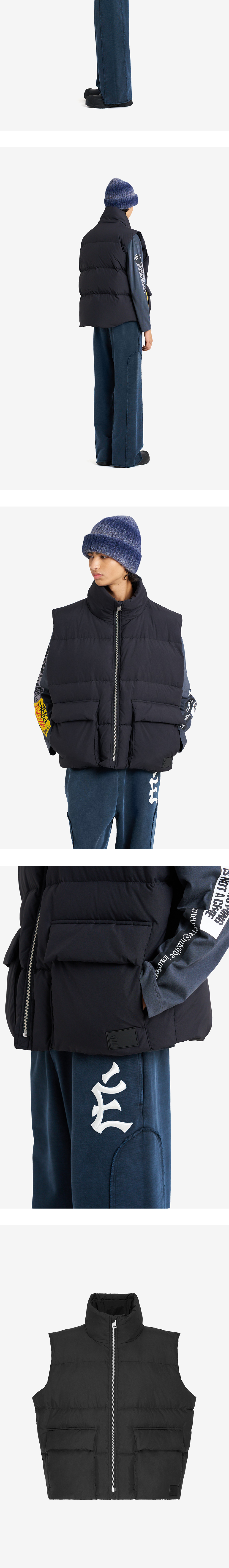 깔끔한 디자인과 넉넉한 실루엣이 매력적인 에뛰드 스튜디오의 다운 베스트입니다. - 여유 있는 핏감 - 방수 나일론 원단 - 스탠드 칼라 - 좌측 하단 로고 실리콘 패치 - 전면 2개의 히든스냅 포켓 및 플랩 포켓 - 내부 가슴 포켓 * 모델: 190cm, 48사이즈 착용