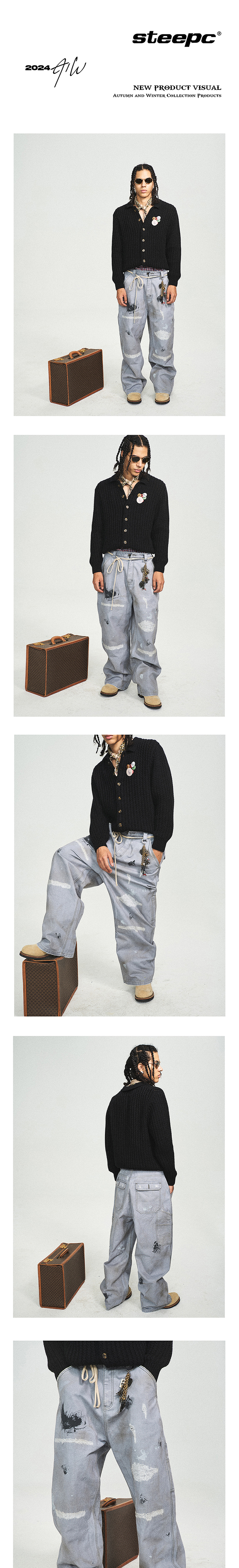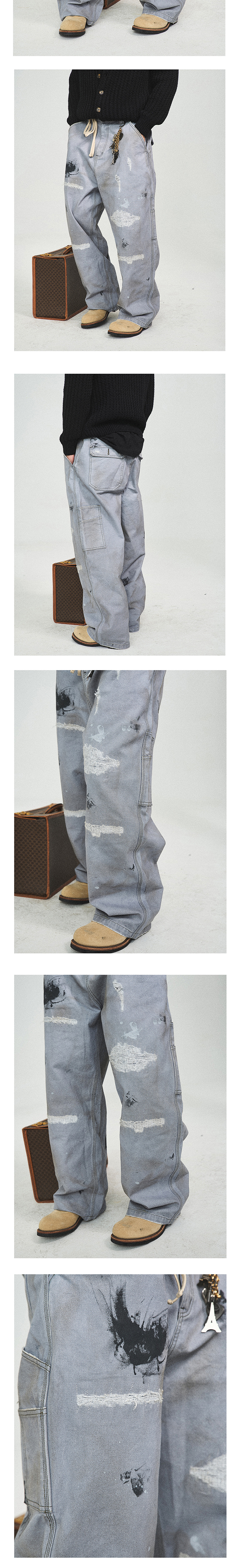* 디스트로이드 데님 * 우측 허벅지 위의 잉크 다잉