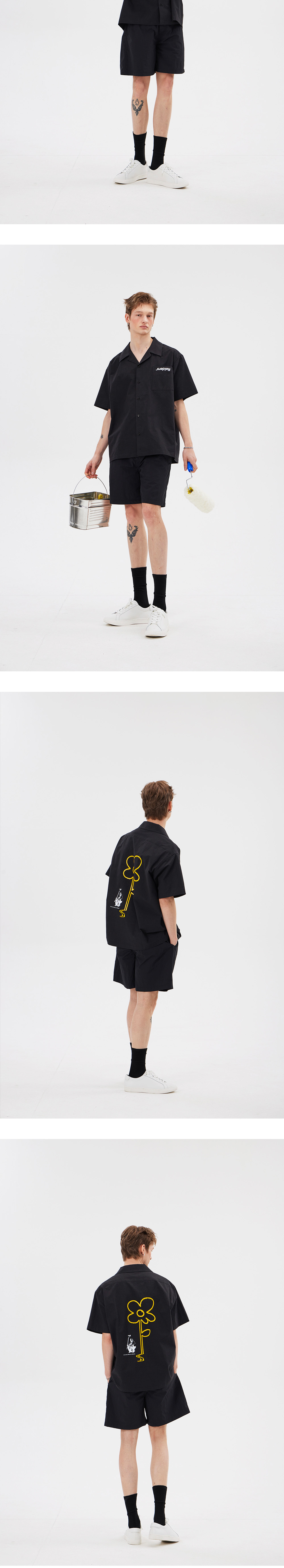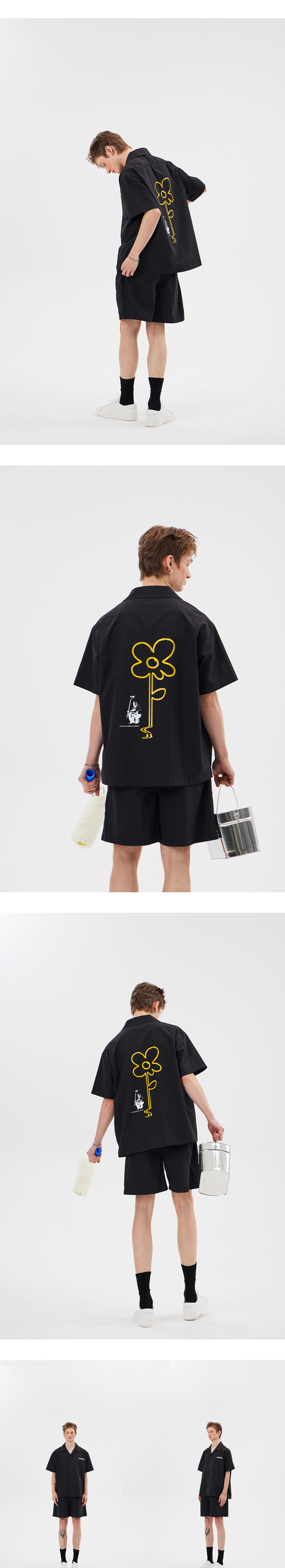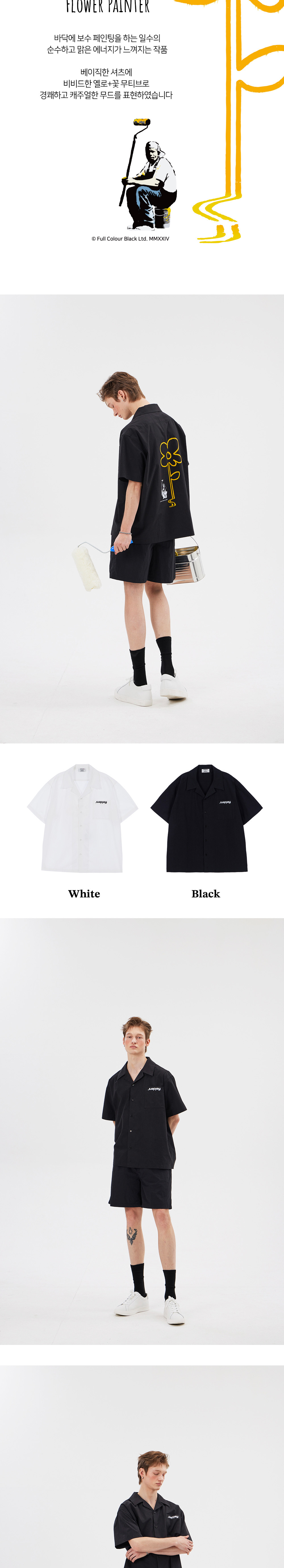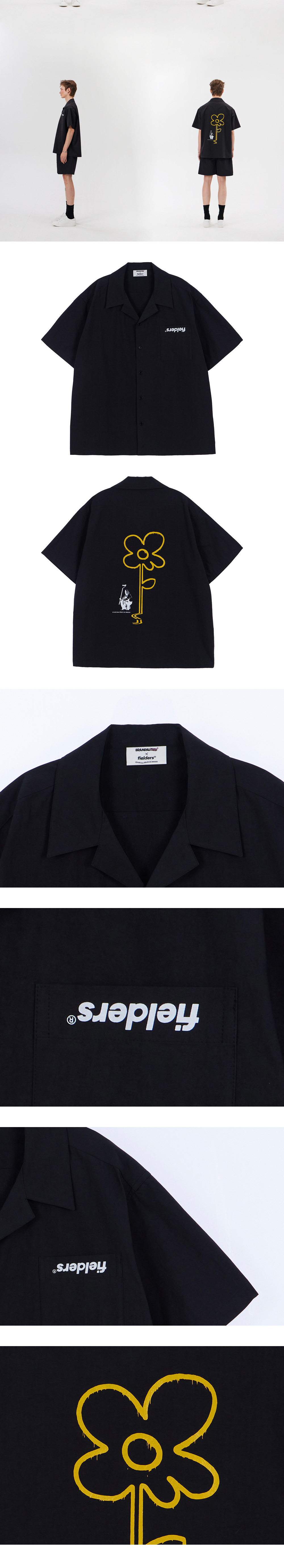 필더스 옐로우 라인 플라워 셔츠 블랙