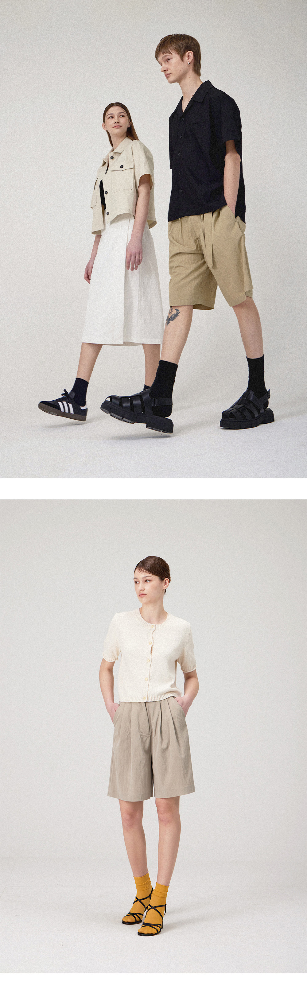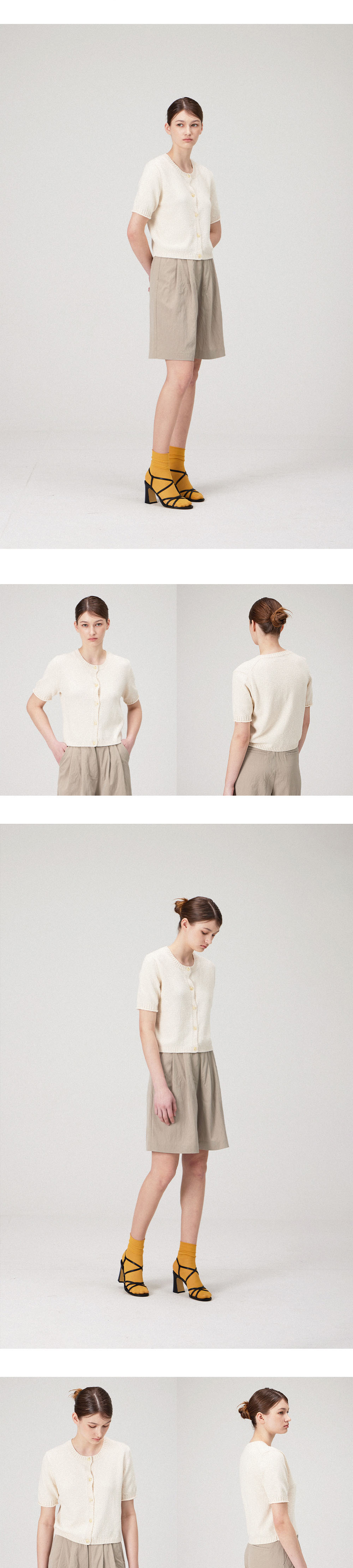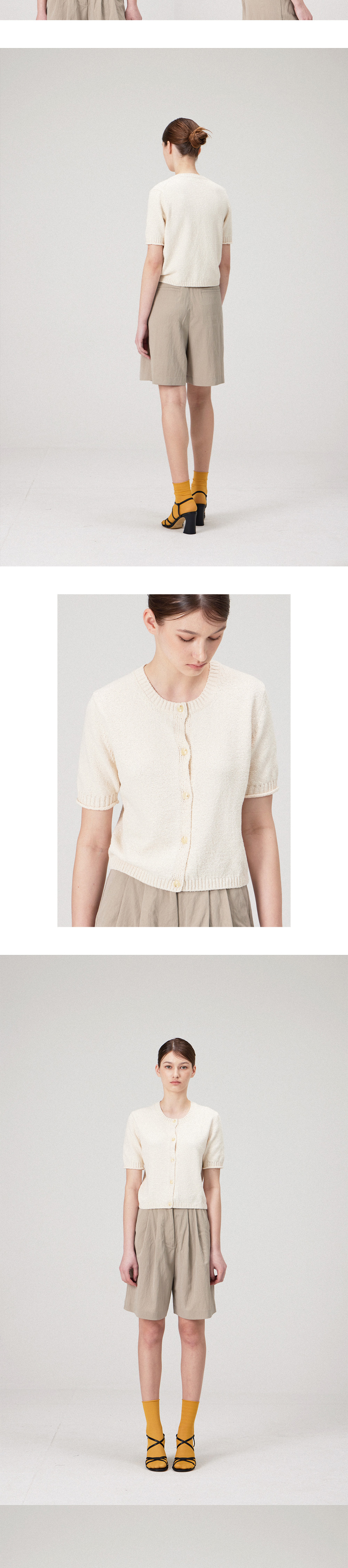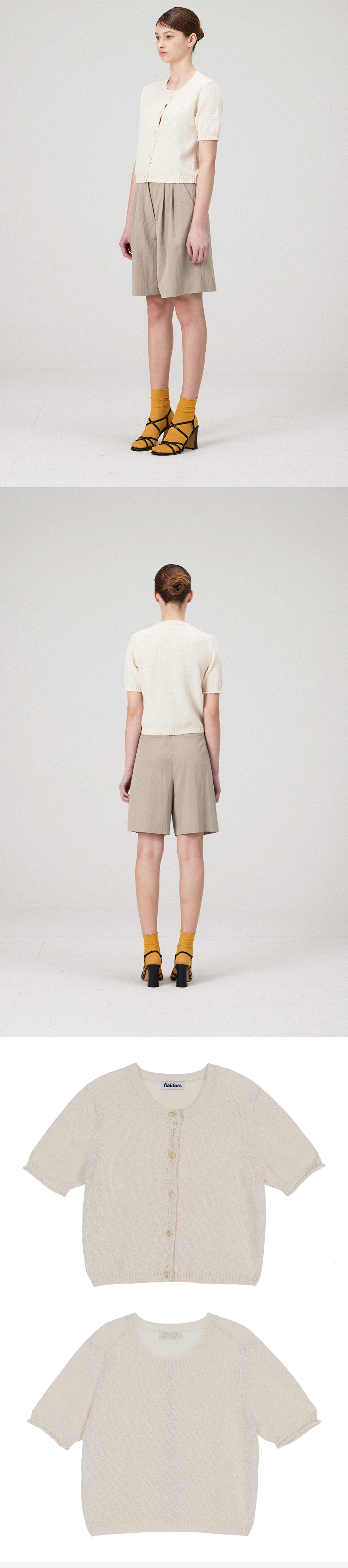 필더스 여성 라운드 넥 버튼 크롭 니트 반팔 가디건 아이보리