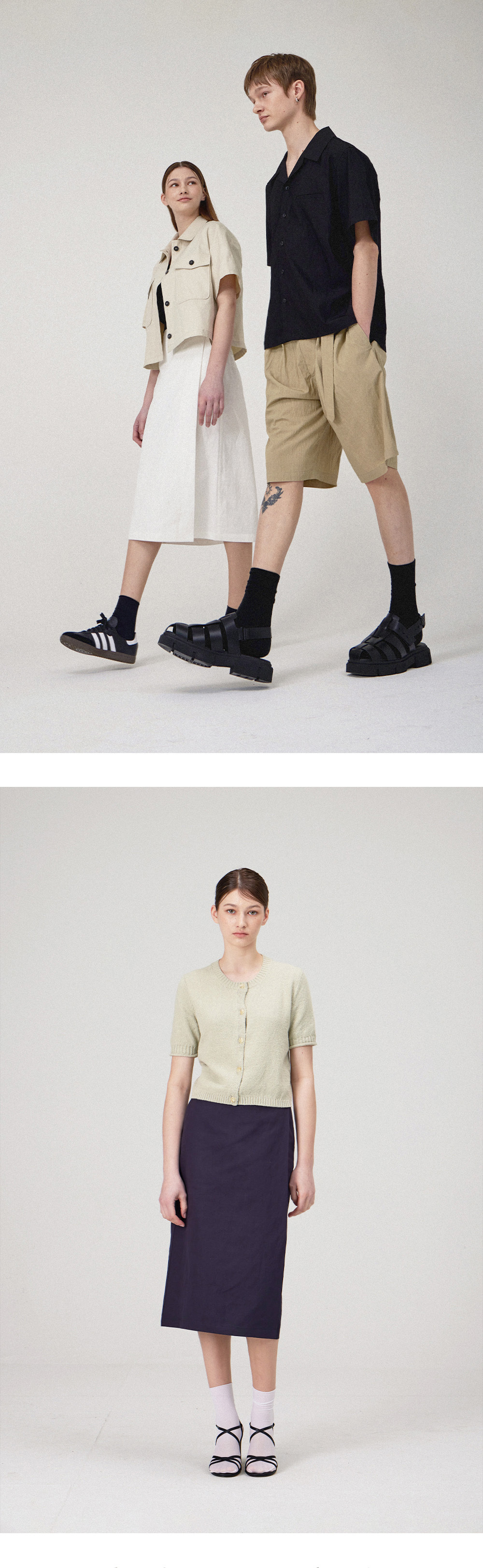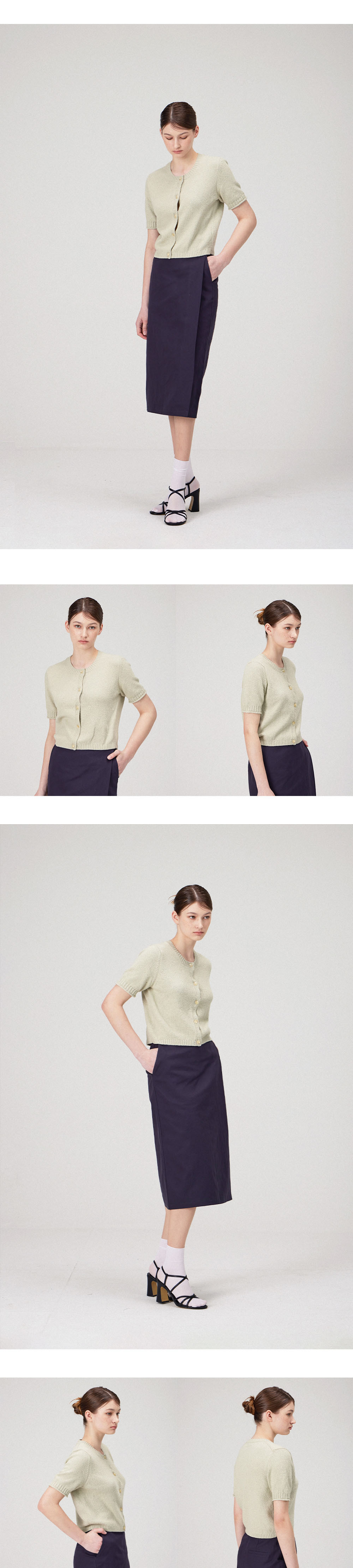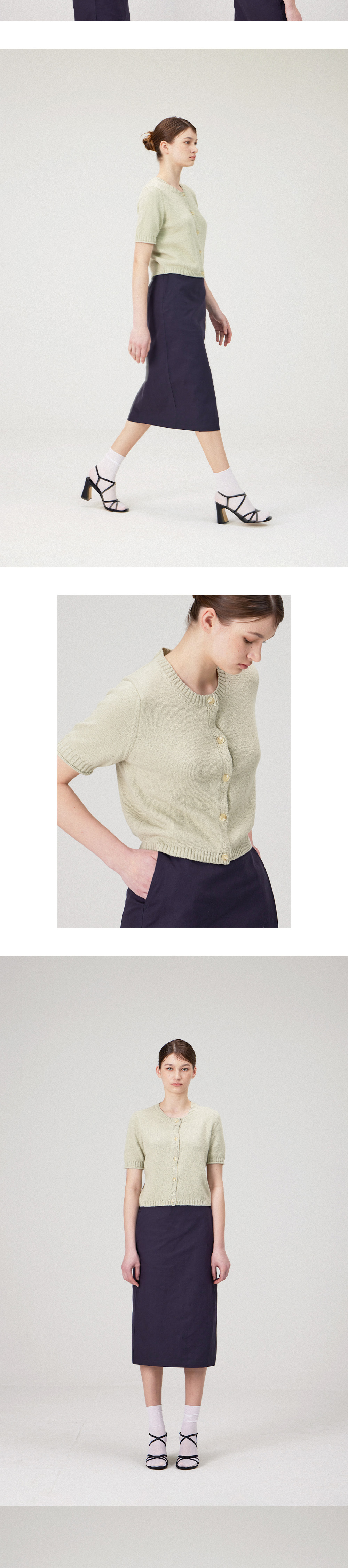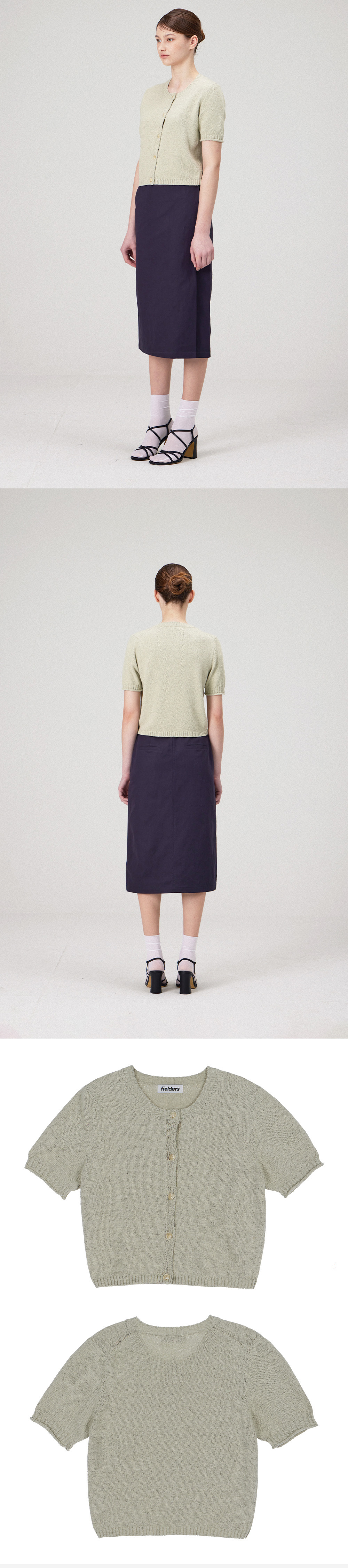 필더스 여성 라운드 넥 버튼 크롭 니트 반팔 가디건 민트