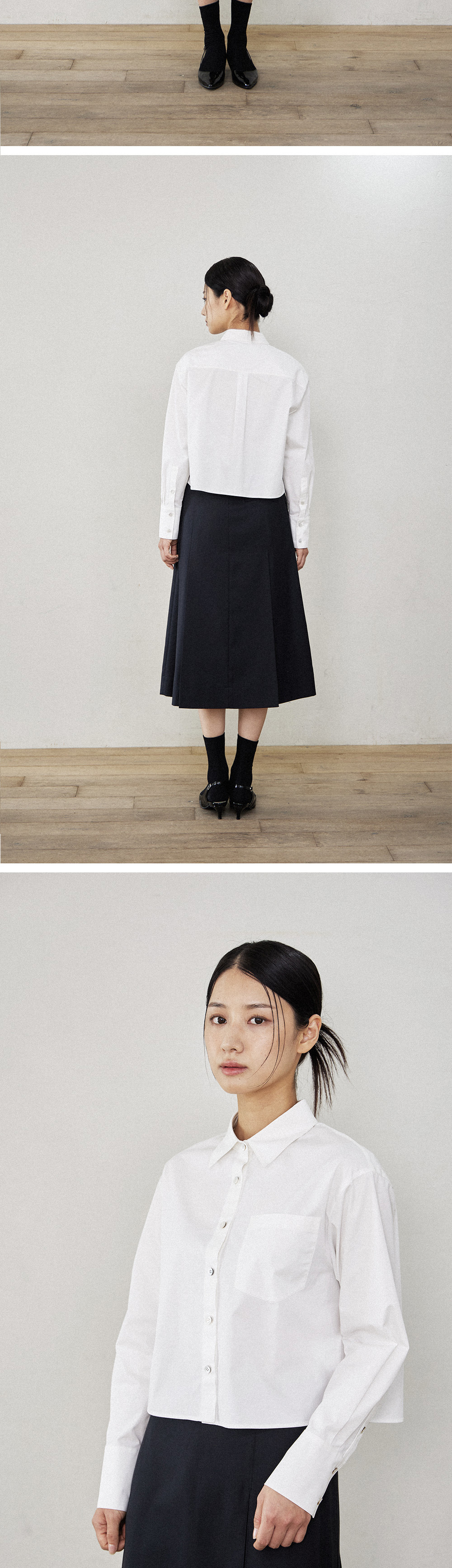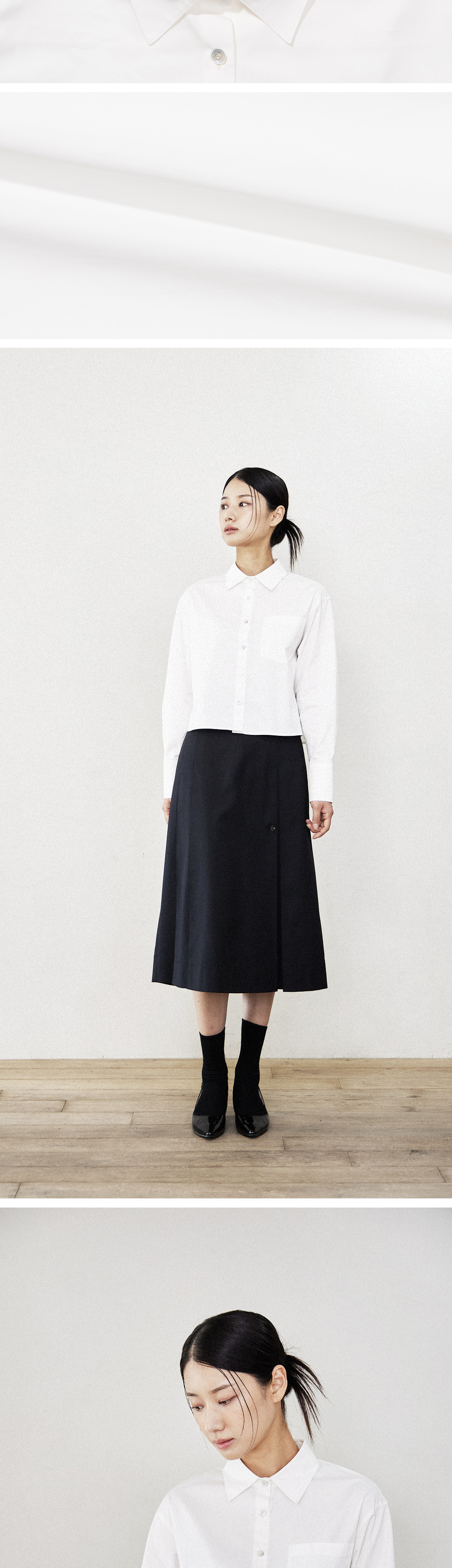 필더스 여성 크롭드 고밀도 면셔츠 화이트