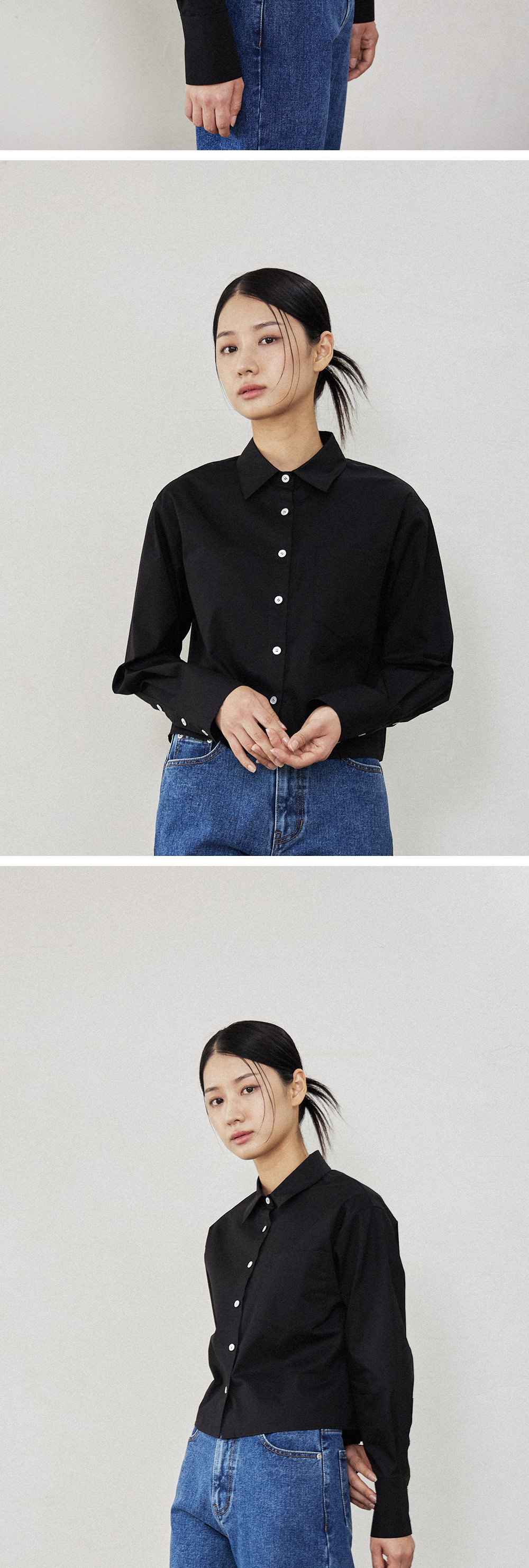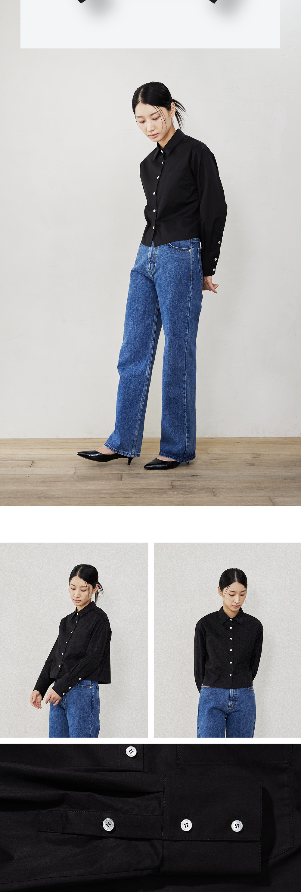 필더스 여성 크롭드 고밀도 면셔츠 블랙