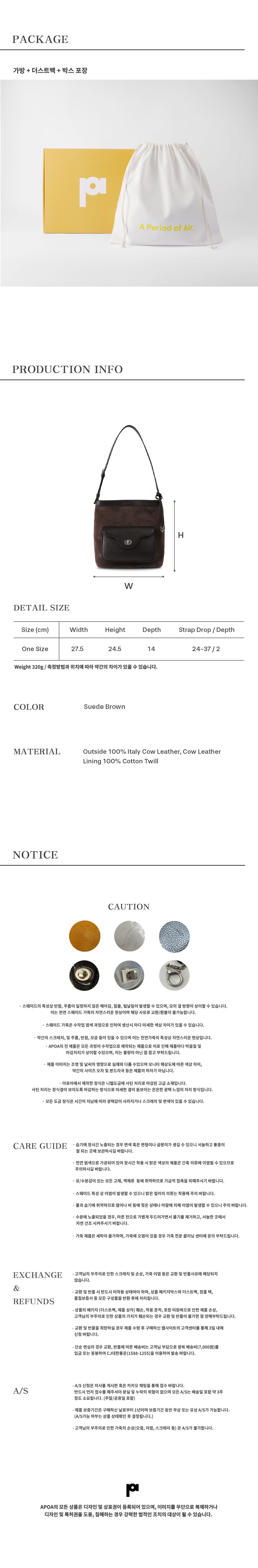 아포아 수아브 레더 버킷백 스웨이드 브라운