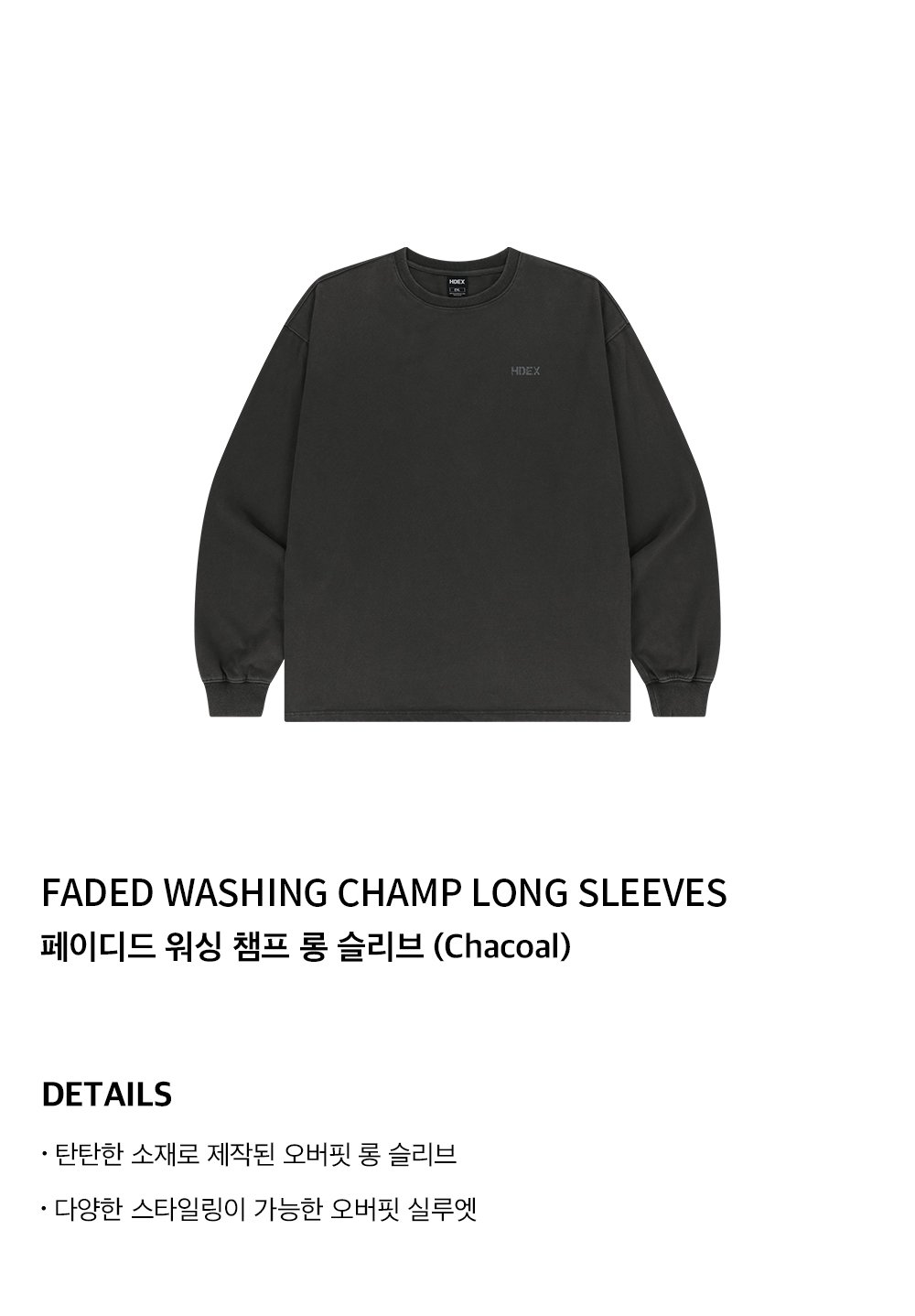 에이치덱스 페이디드 워싱 챔프 롱 슬리브 차콜
