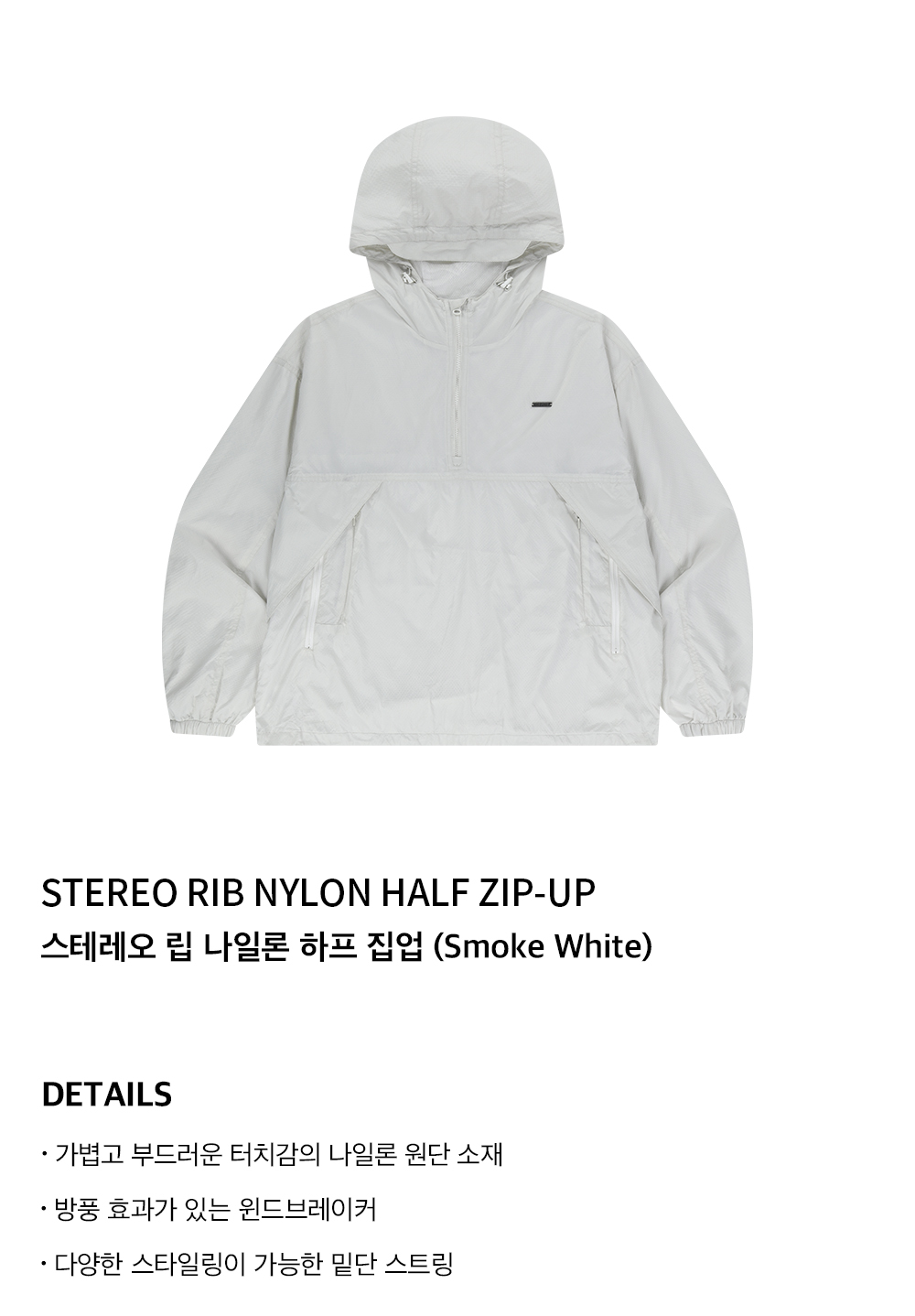 HDEX Stereo Rib Nylon Half Zip-up Smoke White
