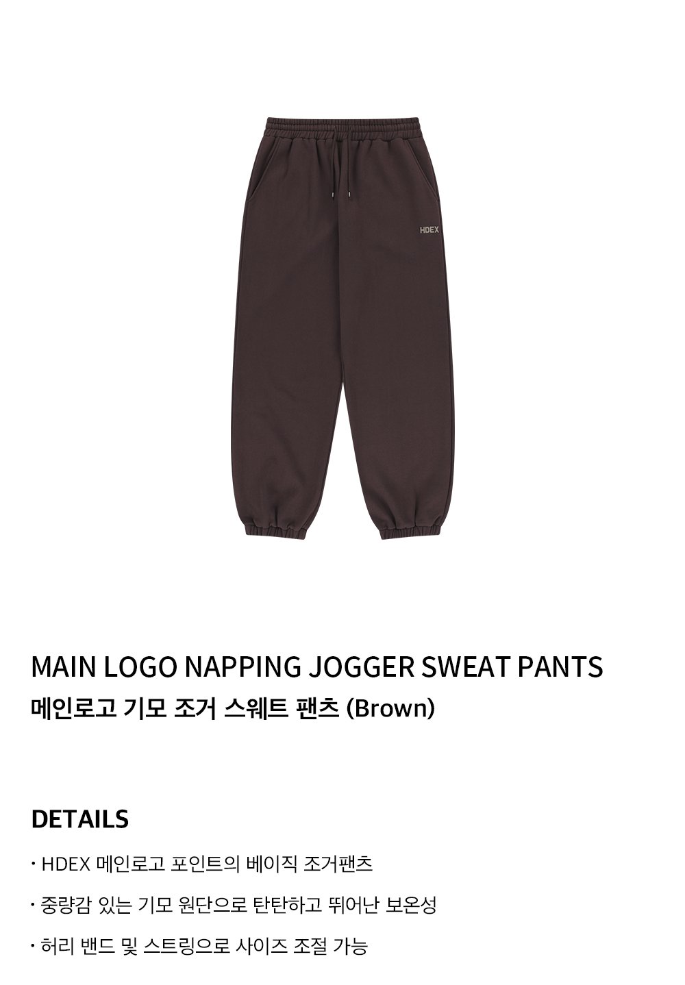 에이치덱스 메인로고 기모 조거 스웨트 팬츠 브라운