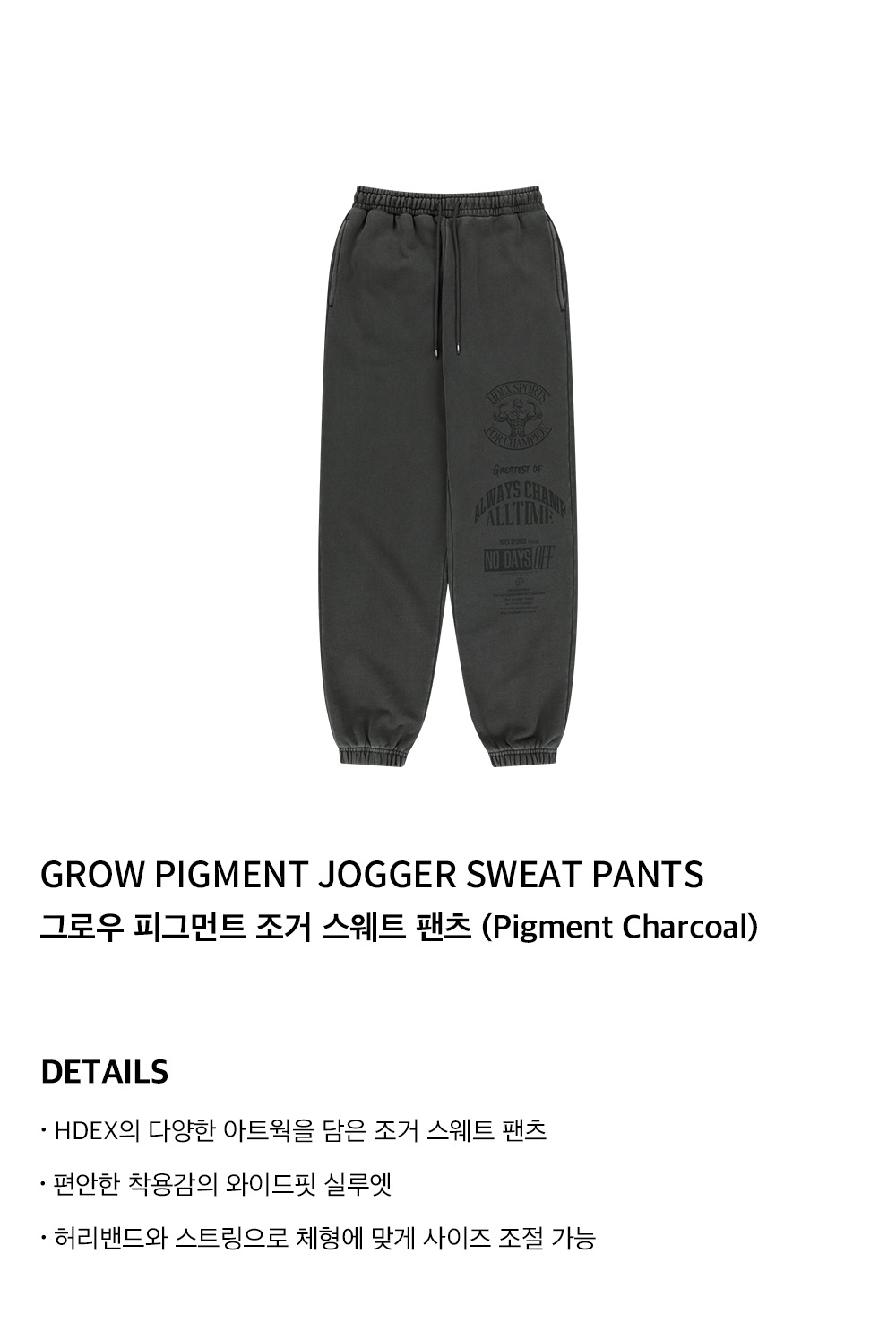 에이치덱스 그로우 피그먼트 조거 스웨트 팬츠 피그먼트 차콜