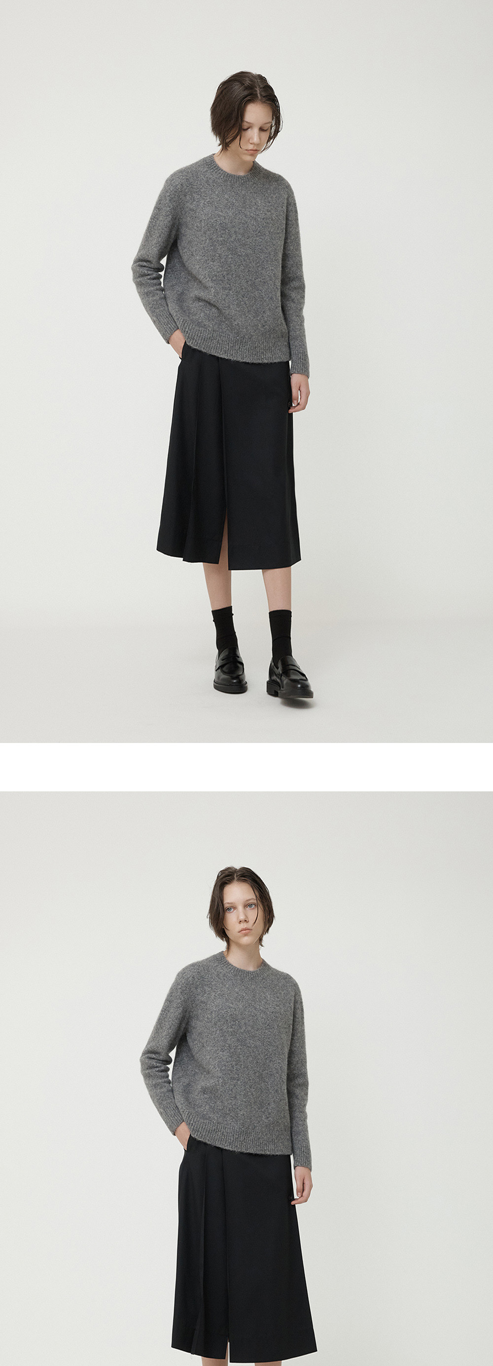 필더스 플리츠 미디 스커트 차콜
