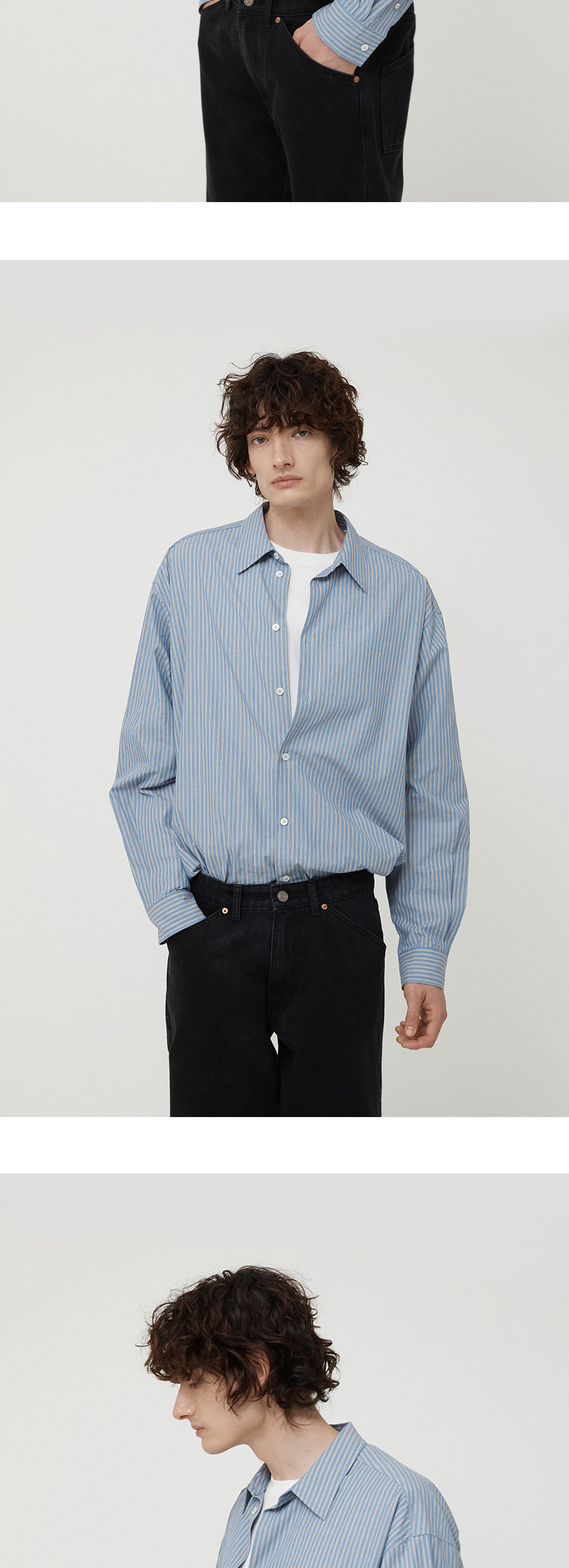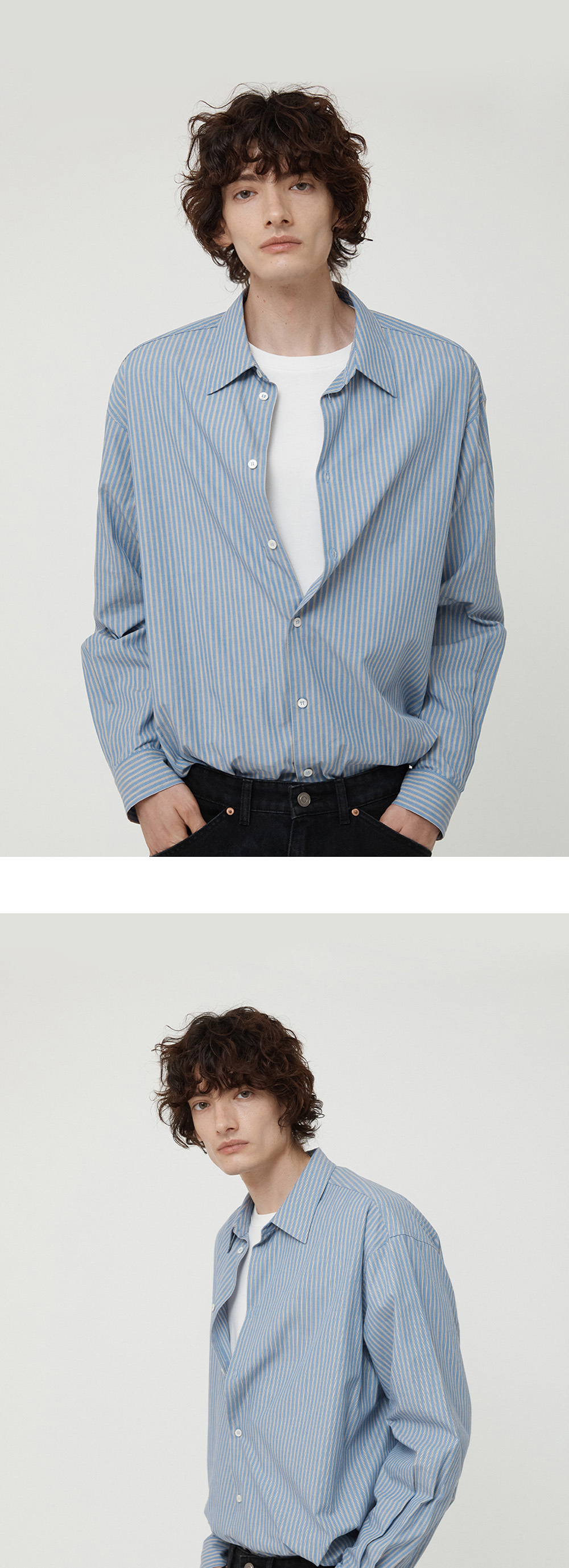 필더스 남성 스트라이프 코튼 셔츠 블루