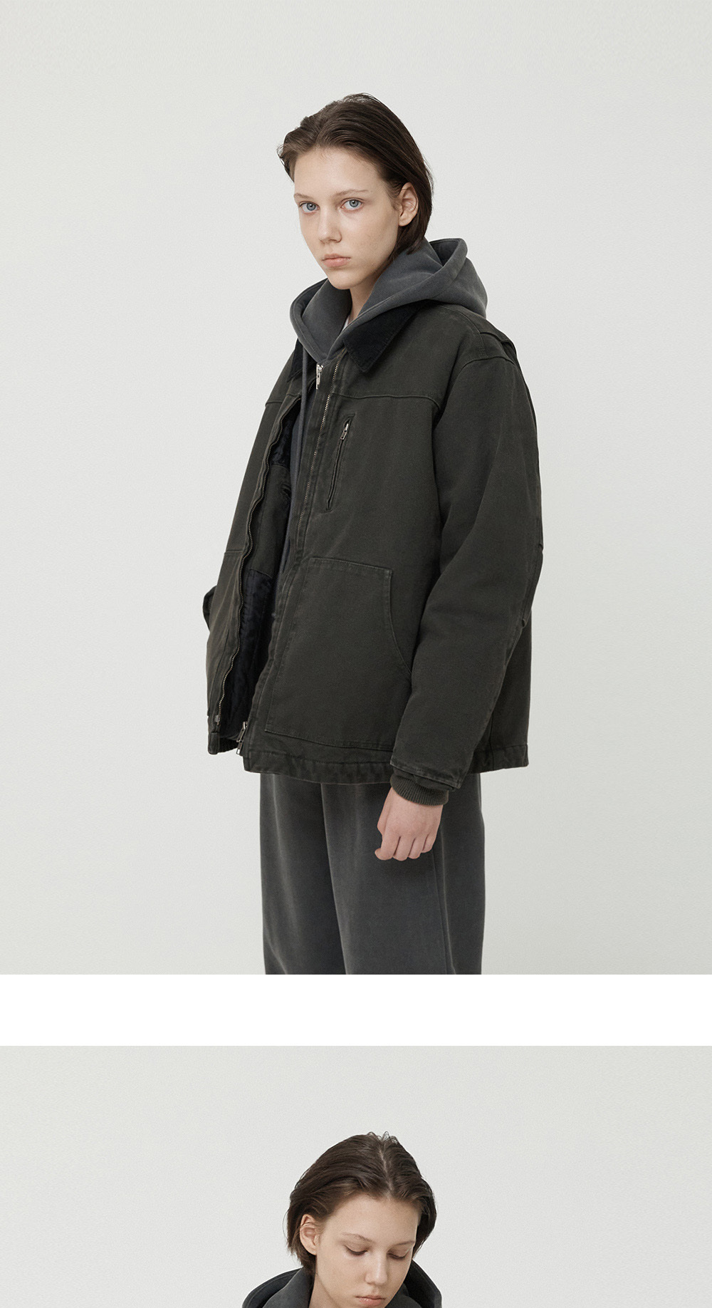 필더스 여성 피그먼트 다잉 후드 집업 딥 그레이