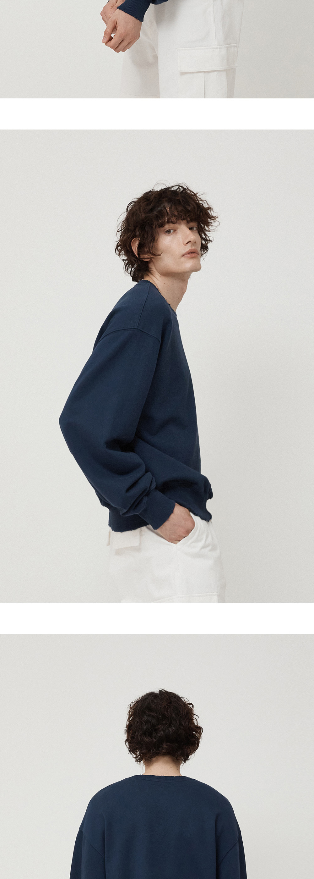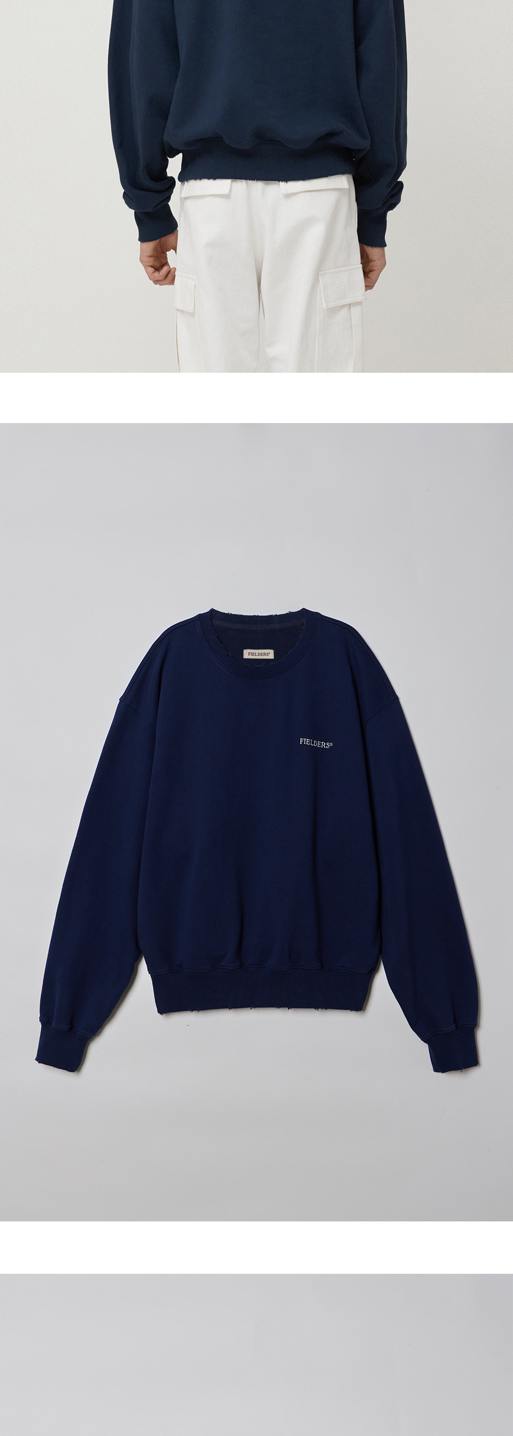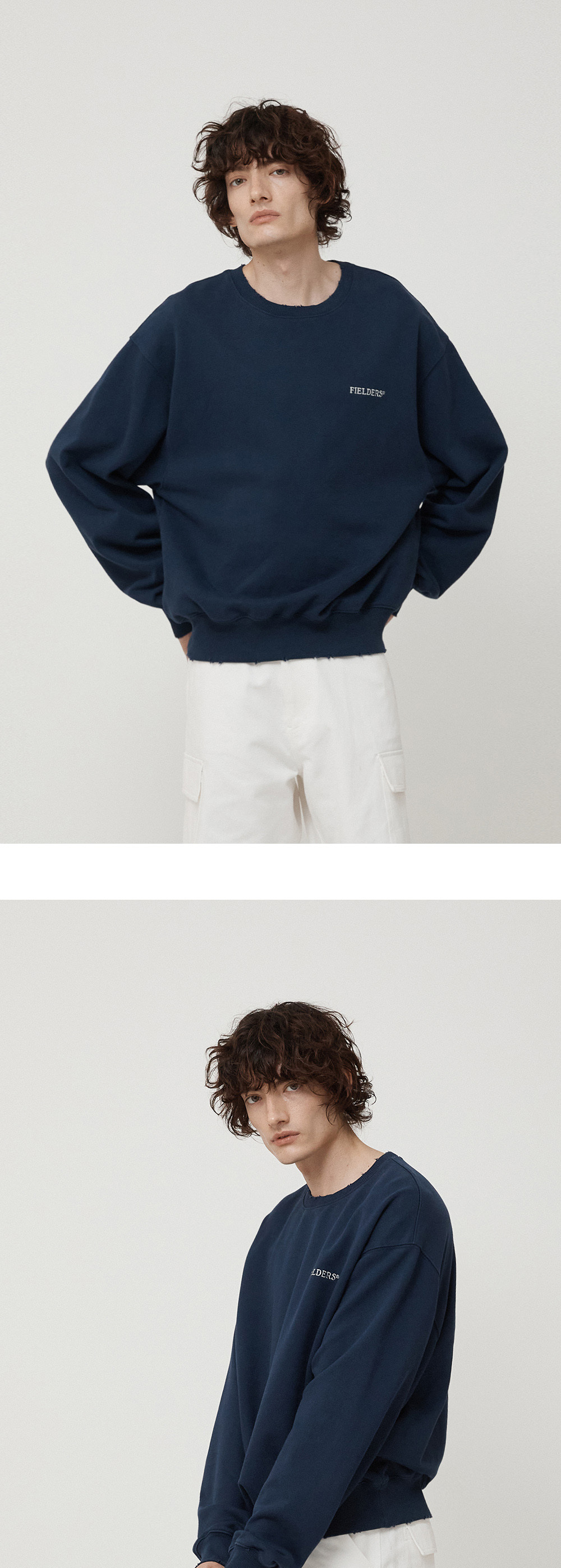 필더스 남성 로고 데미지드 스웻 셔츠 네이비