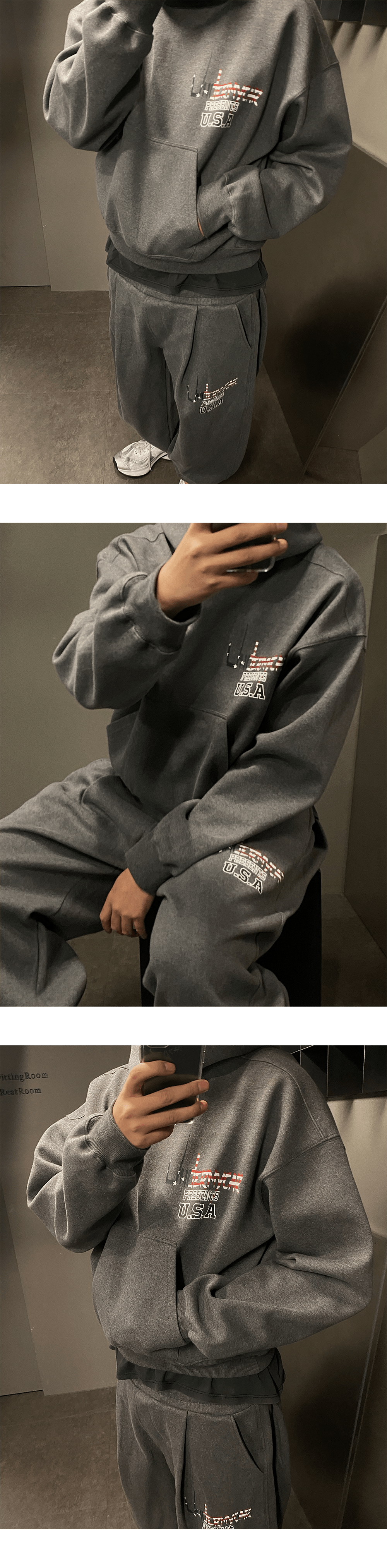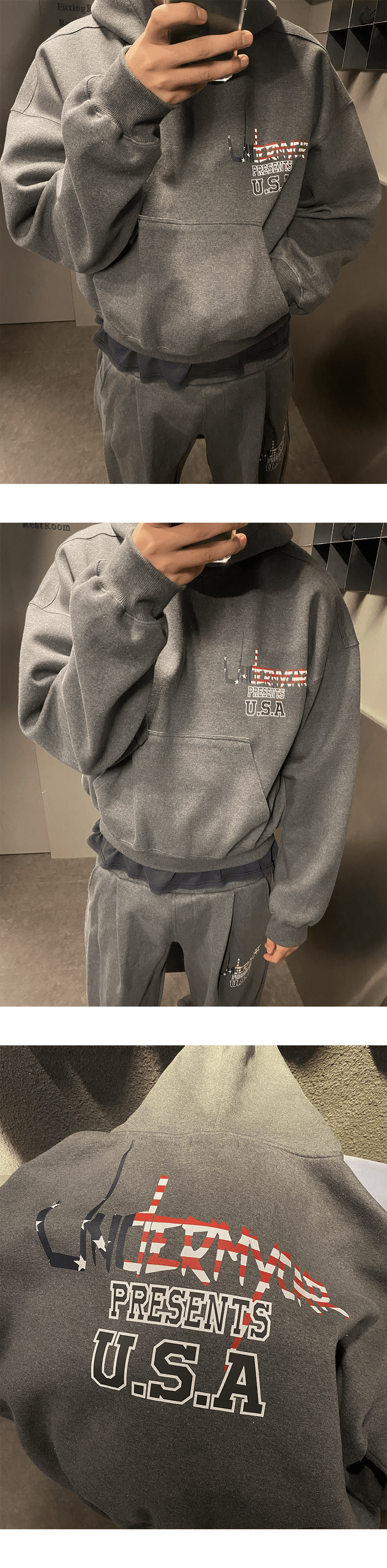 언더마이카 피오씨 USA 플래그 본디 스웻 팬츠 그레이