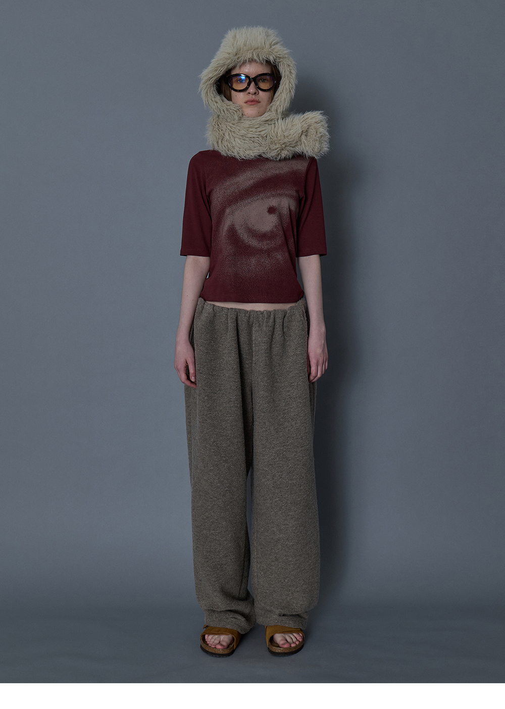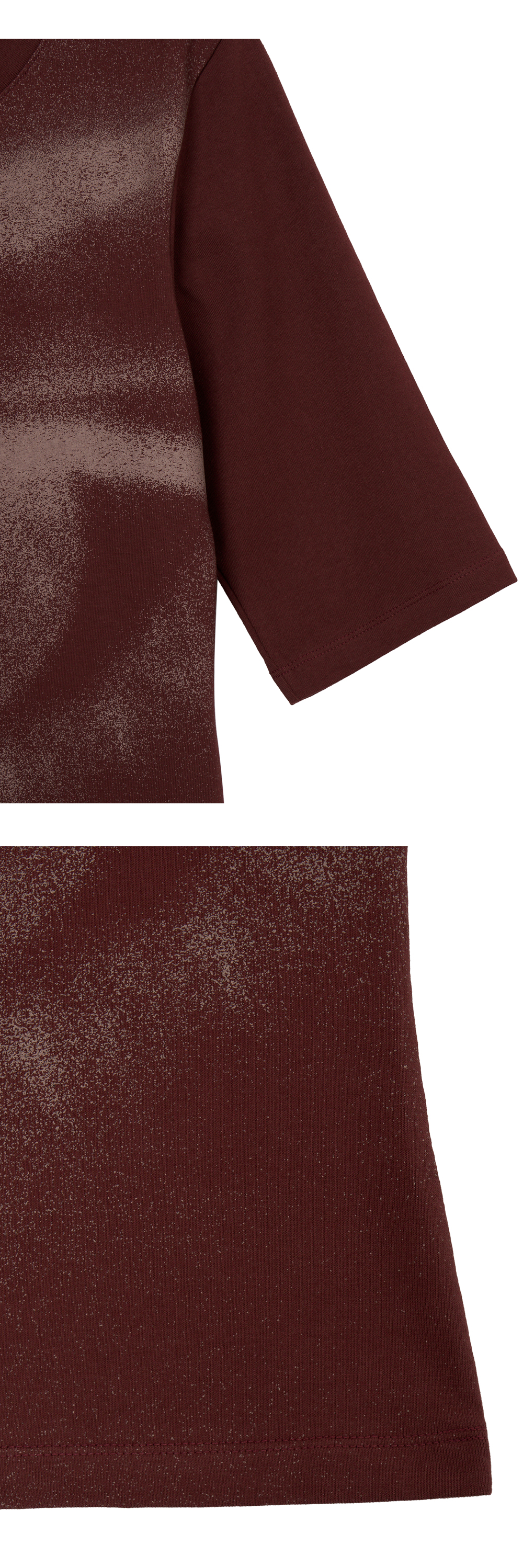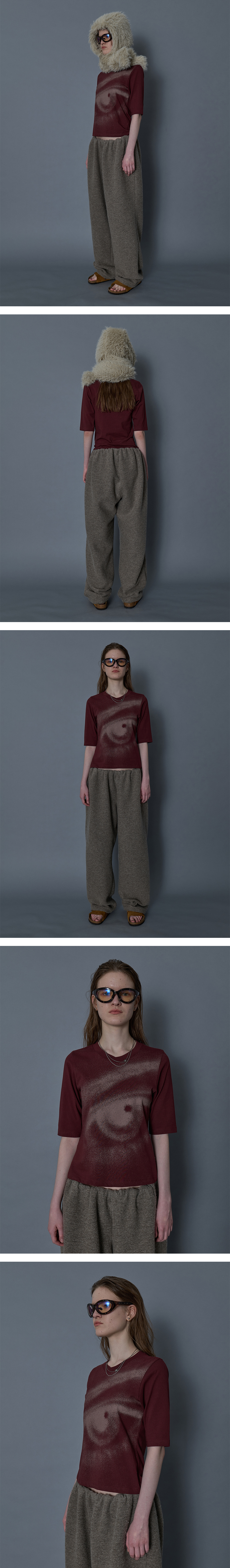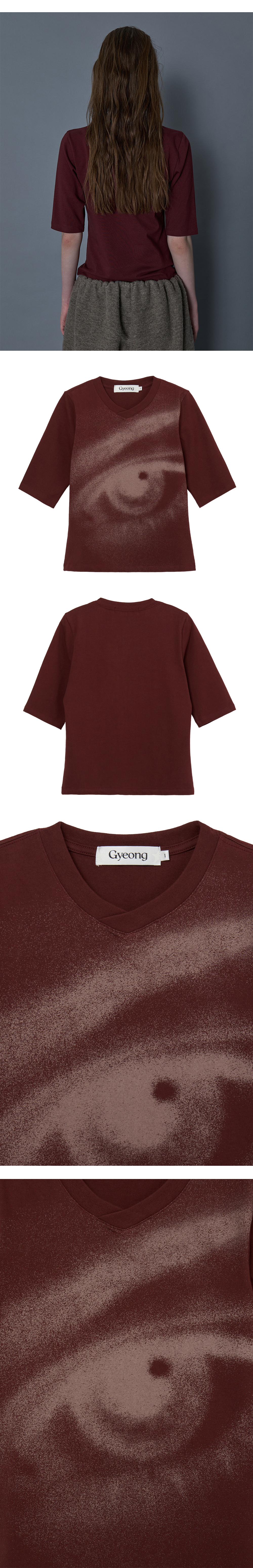 - 전면 Eye 그래픽 5부 기장의 V넥 탑 - 어깨 라인 체인스티치 - 슬림핏의 실루엣 * Shell : 95% Cotton, 5% Span * Made in Korea