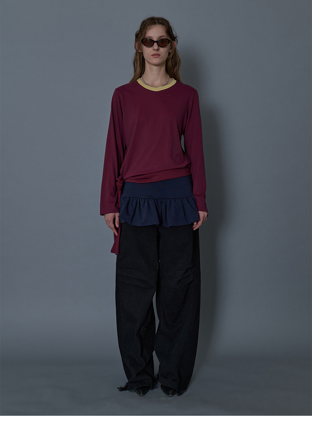 Gyeong Tie Striped Long Sleeve Tee Red & Navy