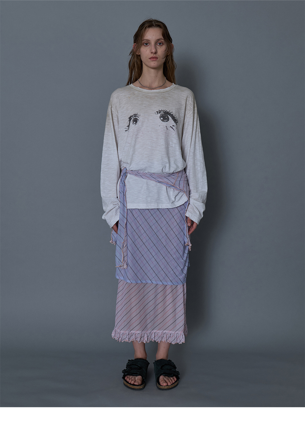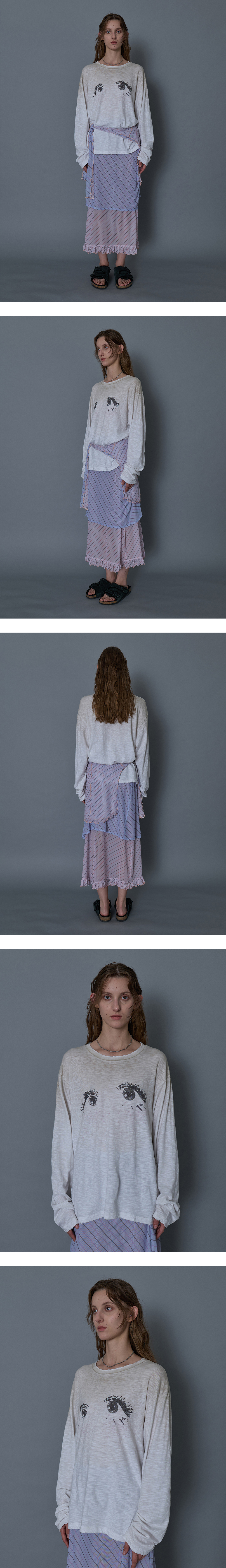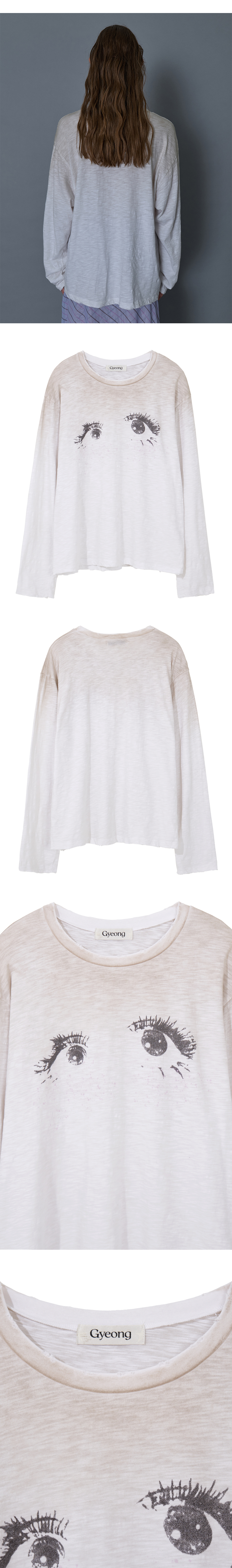 - 전면 Eye 그래픽 롱 슬리브 탑 - 상단 더티 워싱 - 부드러운 터치감 - 오버사이즈 핏의 여유로운 실루엣 * Shell : 100% Cotton * Made in Korea