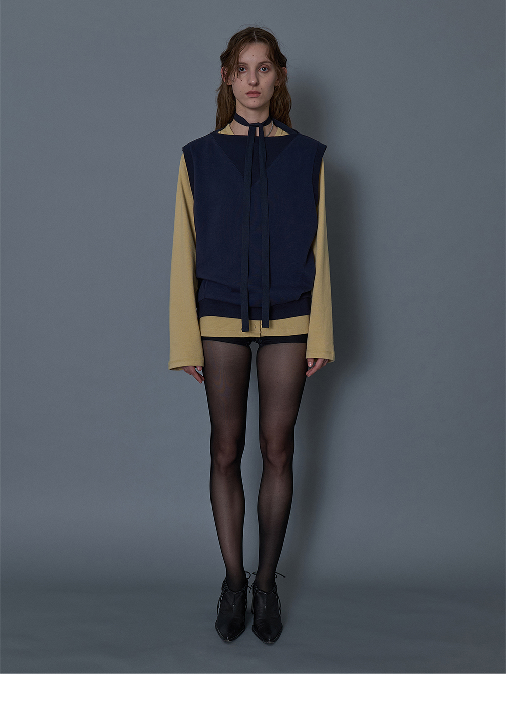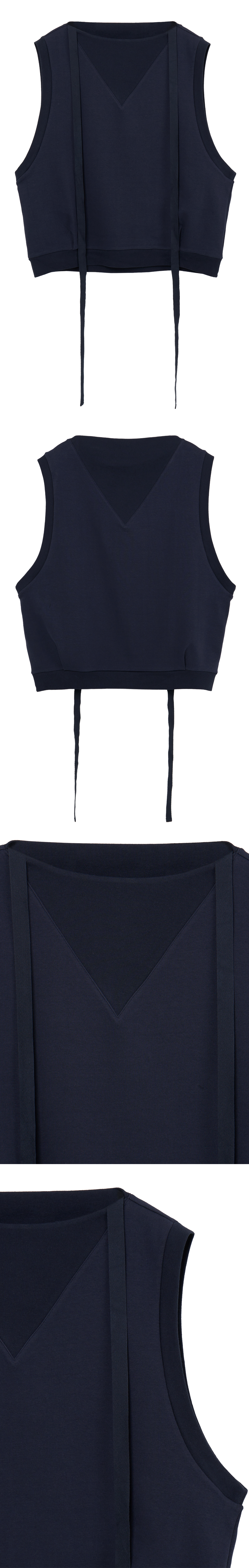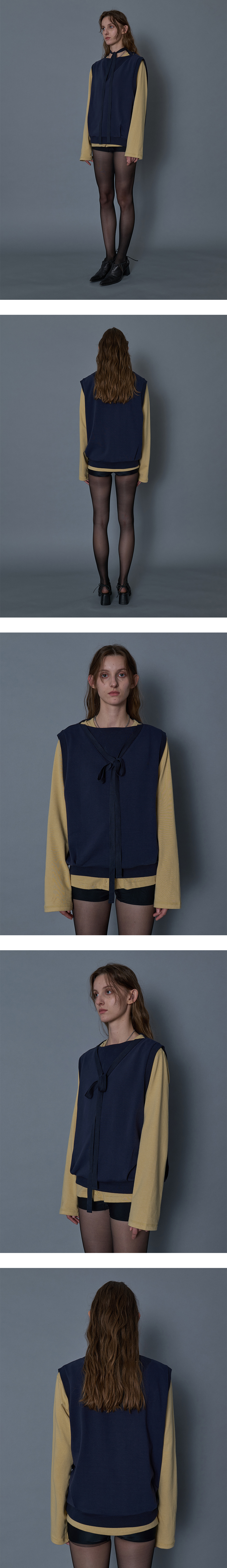 - 박시한 사이즈의 타이 슬리브리스 베스트 - 소매,네크라인,밑단 톤온톤 디테일 - 어깨라인 끈으로 다양한 스타일 연출 용이 - 하단 턱 디테일 - 편안한 착용감의 오버사이즈 핏의 실루엣 * Shell : 100% Cotton * Made in Korea