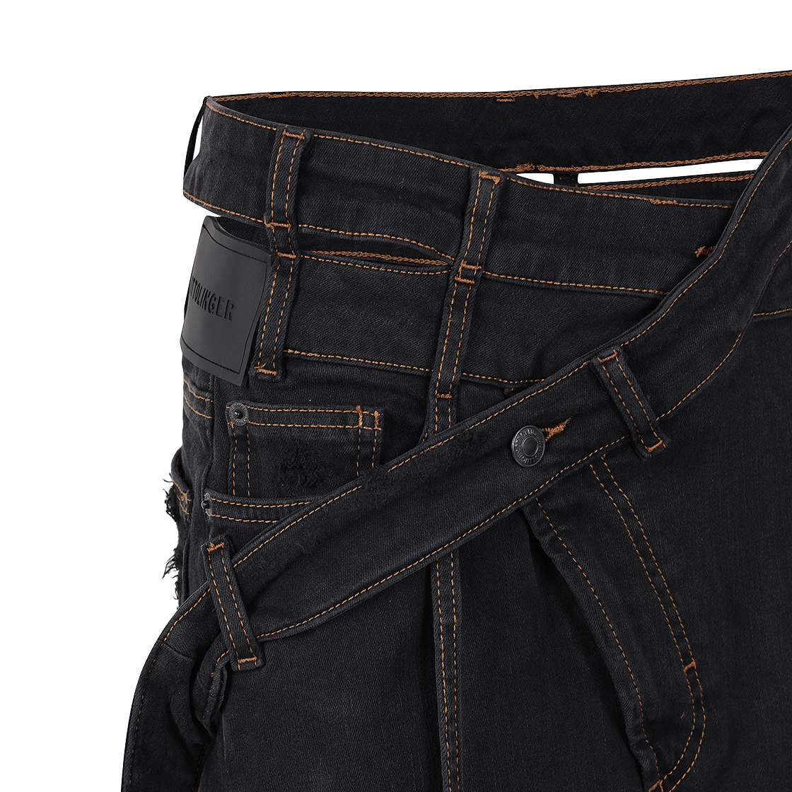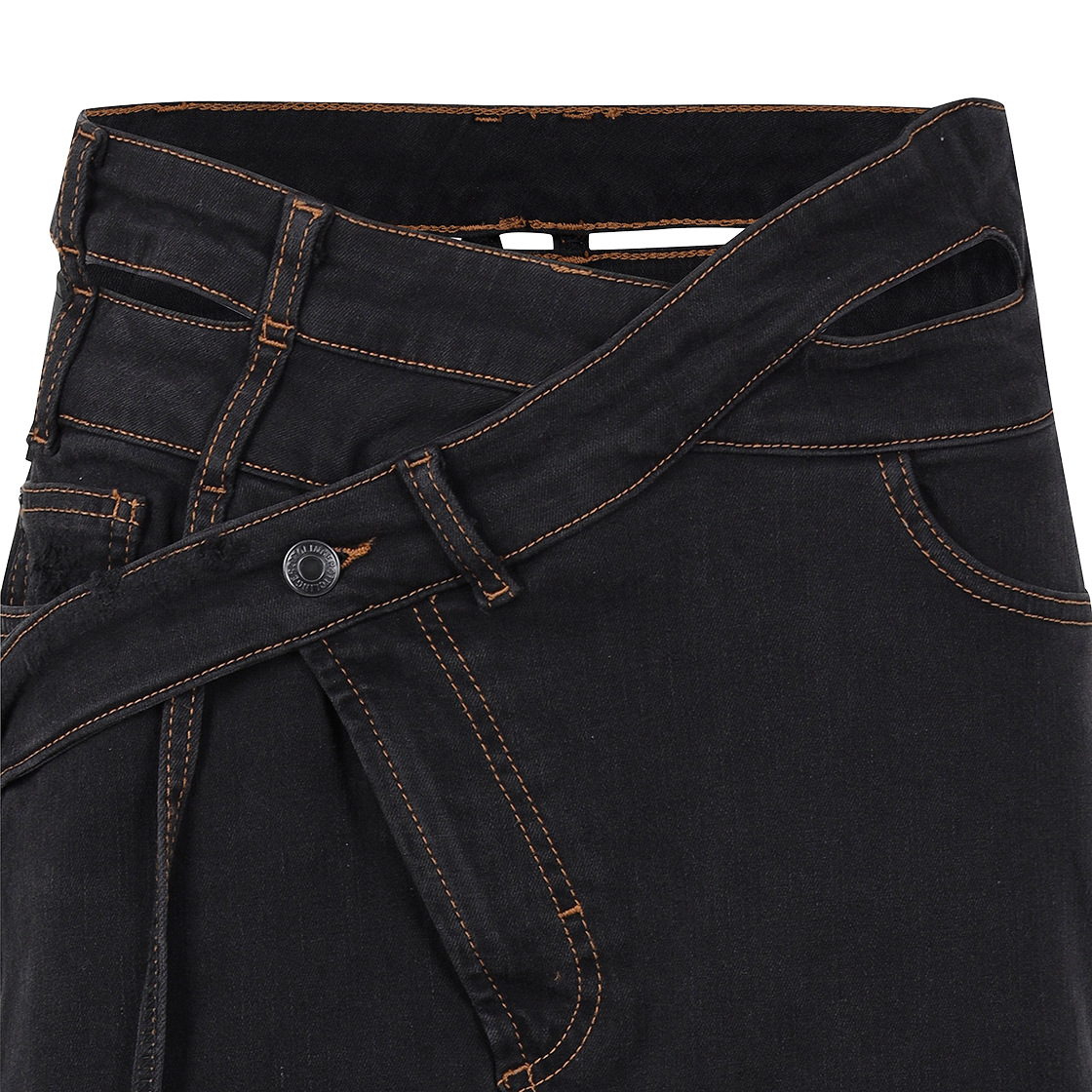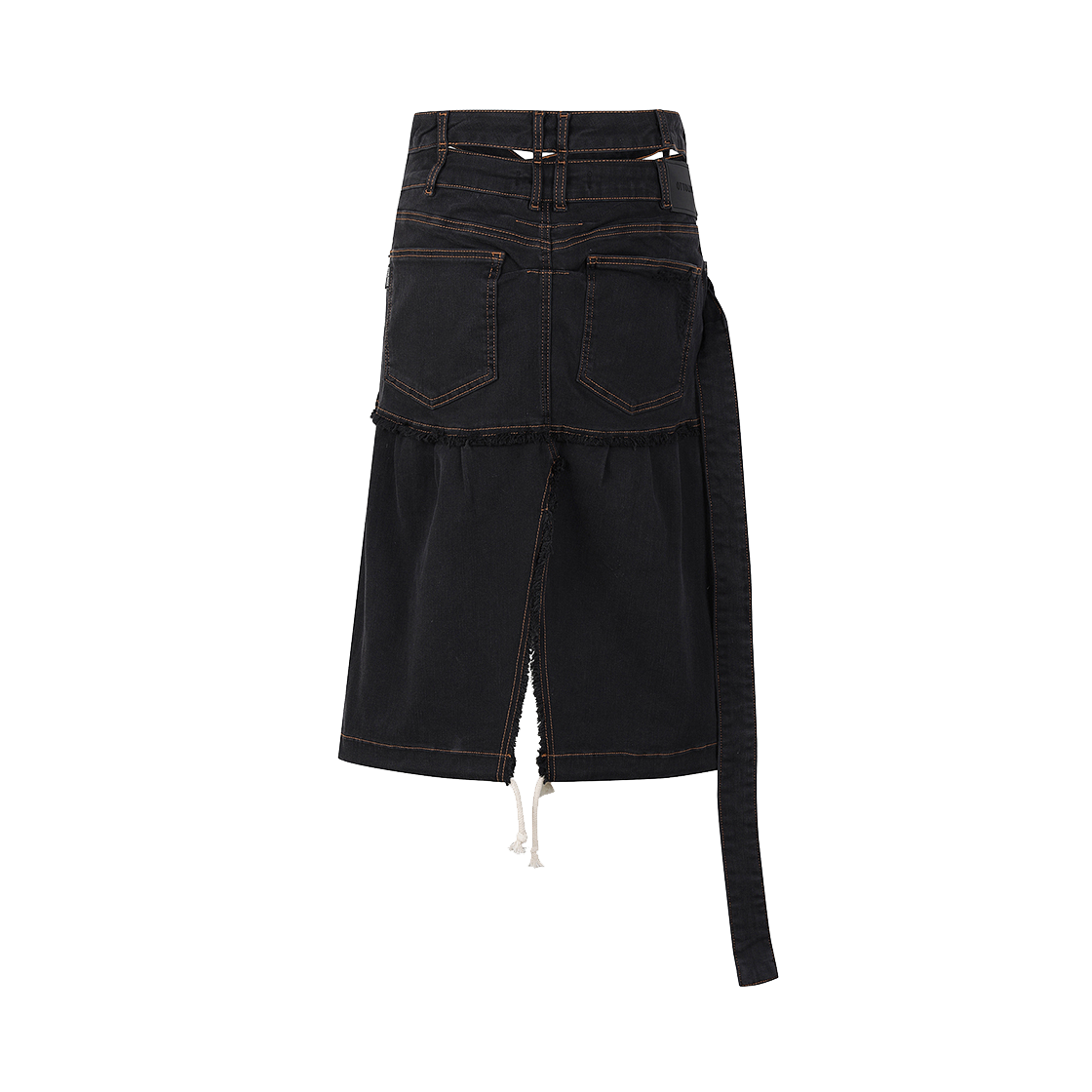 유니크하고 해체적인 디자인으로 룩에 포인트를 줄 수 있는 오토링거의 시그니쳐 랩 데님 스커트입니다. - 버튼 및 지퍼 클로징 - 높은 코튼 함량의 부드러운 원단 - 러프한 마감 디테일 - 밑단 스트링으로 실루엣 조절 가능