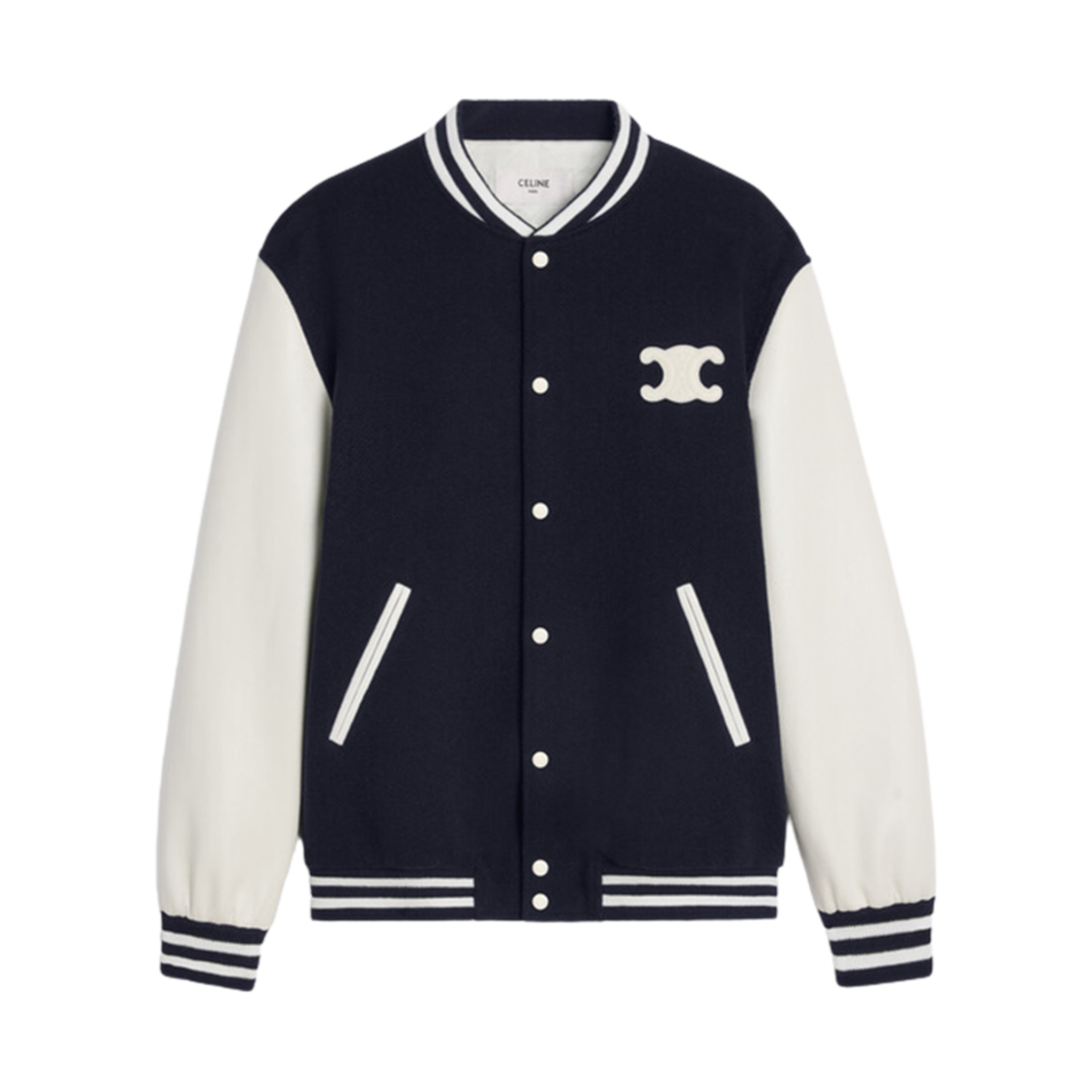 (W) 셀린느 텍스처드 울 테디 바시티 자켓 네이비