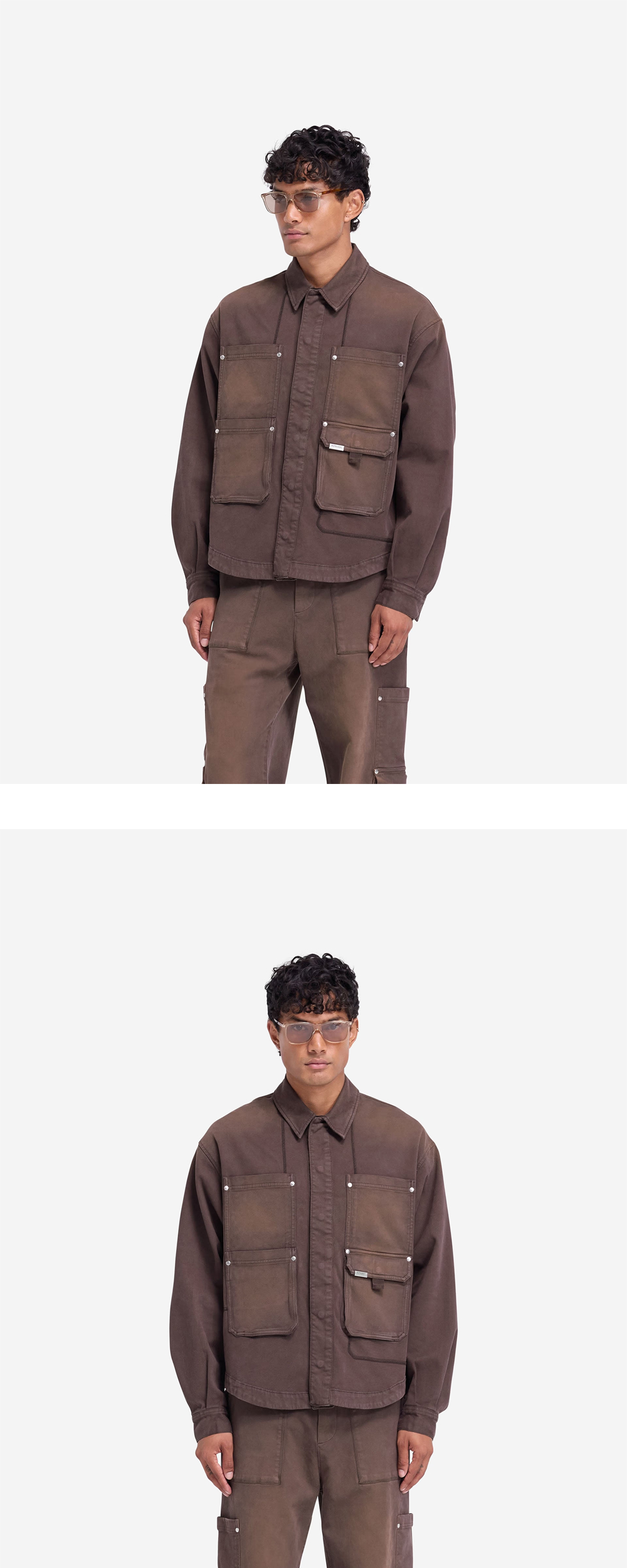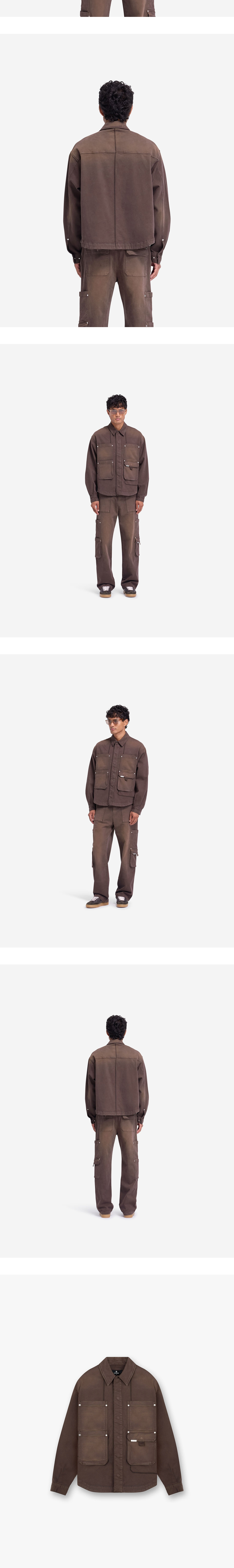 매력적인 빈티지 무드의 컬러에 워크웨어 감성의 디테일이 더해진 리프레젠트의 워크샵 셔츠입니다. - 전면 히든 스냅 버튼 클로징 - 실루엣을 잡아주는 후면 요크 디테일 - 소매 스냅 버튼으로 실루엣 조절 가능 - 좌측 포켓 금속 로고 막대 디테일 - 워크샵 팬츠와 셋업으로 착용 가능 * 모델: 188cm/75kg, M사이즈 착용