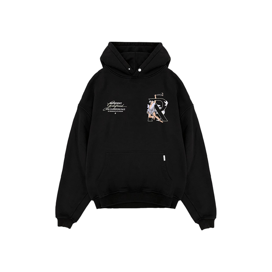 심플한 디자인에 프린팅된 헤르메스와 후드의 버튼이 매력적인 리프레젠트의 에르메스 후드입니다. - 오버사이즈 핏 - 전/후면의 고밀도 스크린프린팅 그래픽 - 후드의 Cobrax 스냅 버튼 디테일 - 좌측 포켓 금속 로고 막대 디테일 * 모델: 182cm/73kg, M사이즈 착용