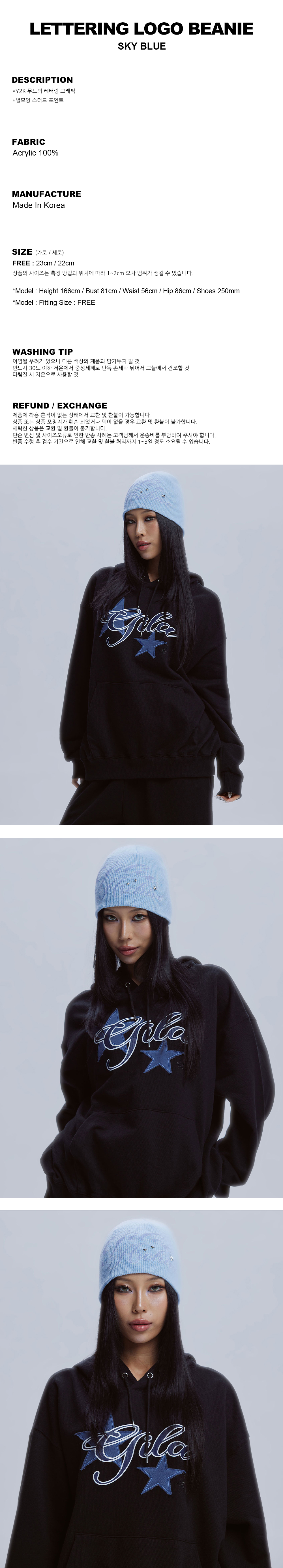 길라 아카이브 레터링 로고 비니 스카이 블루