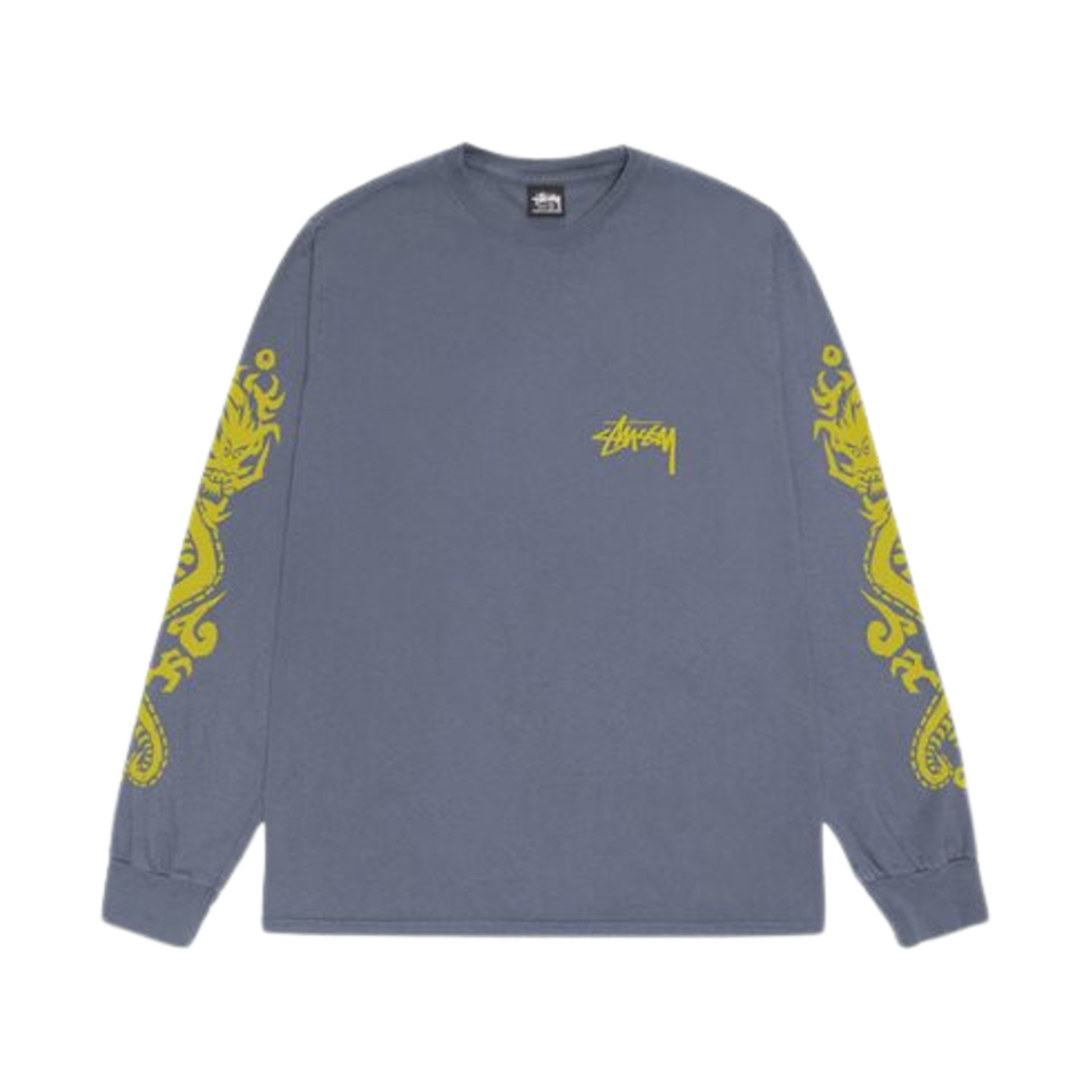 스투시 드래곤 피그먼트 다이드 롱슬리브 티셔츠 인디고