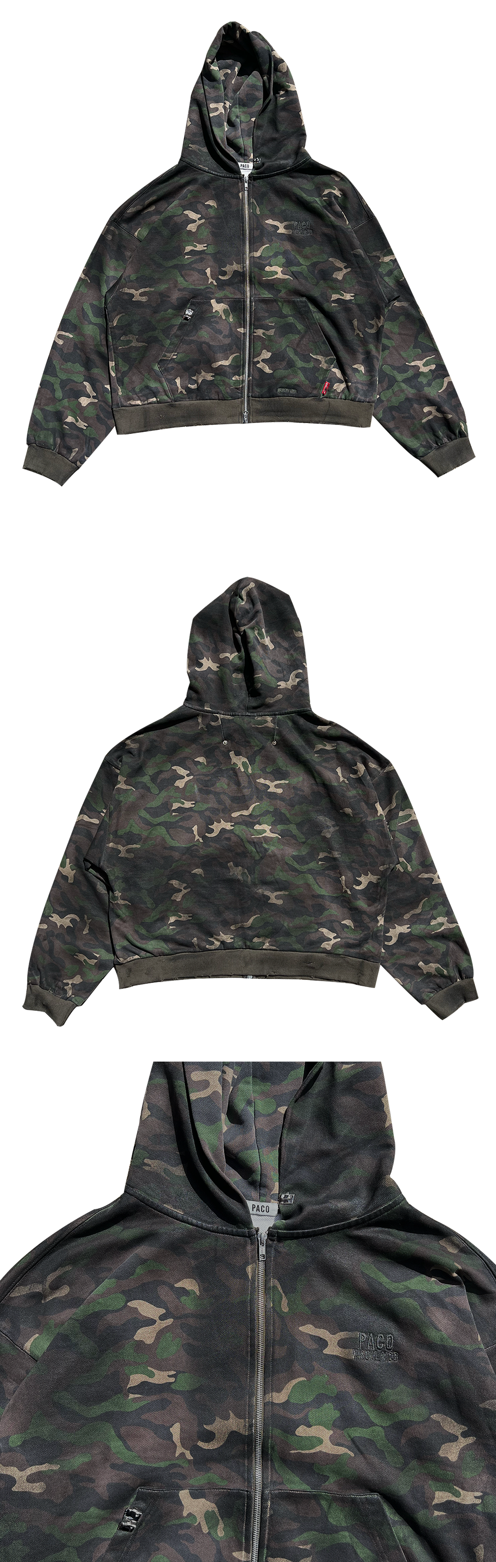 - 어깨가 드롭된 크롭 오버 핏 - 프론트 투웨이 금속 YKK 지퍼 - 전판 더티 오일 & 립 데미지 워싱 - 프론트 체스트 , 포켓 자수 위 더티 오일 커버링 - PACO 라이터 캡 금속 장식 - 백 슬릿 PACO 메탈 니켈 리벳 - 레드 SPLY 직조자수 탭 MODEL 174cm wearing 2size
