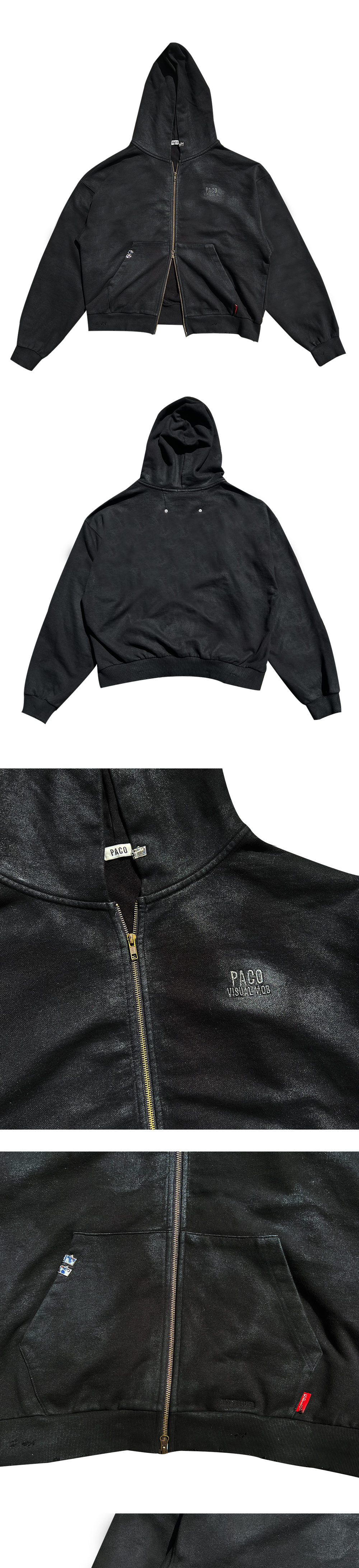 [트리플적립] 파코서플라이 더티 메탈 집업 후드 블랙