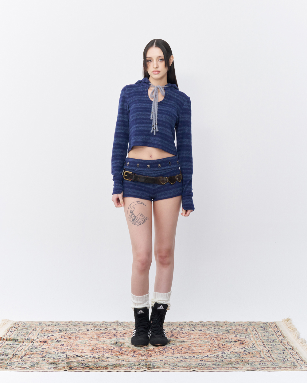 CARE 중성세제를 사용하여 찬물에 단독 손세탁 하십시오. 단독 드라이클리닝을 권장합니다. 중간 온도로 다림질 해주세요. 물에 장시간 방치, 탈색제, 건조기 사용 시 의류가 손상될 수 있으니 주의 바랍니다. 이염 우려가 있으니 열이나 젖은 상태를 피하시고 밝은 소재의 의류와 분리하여 주십시오. DRY CLEAN WASH INSIDE OUT HAND WASH COLD USE NEUTRAL DETERGENT DO NOT BLEACH DO NOT TUMBLE DRY MEDIUM IRON