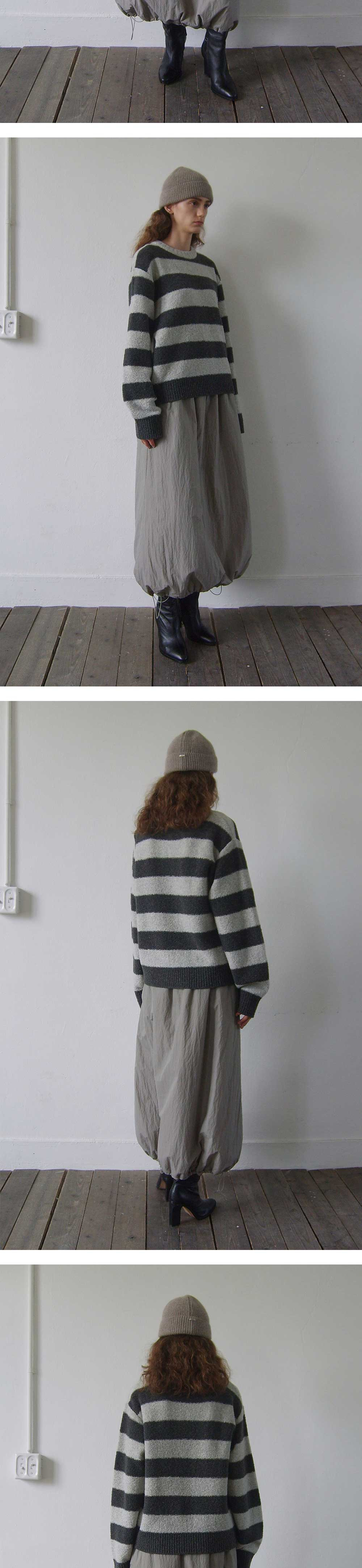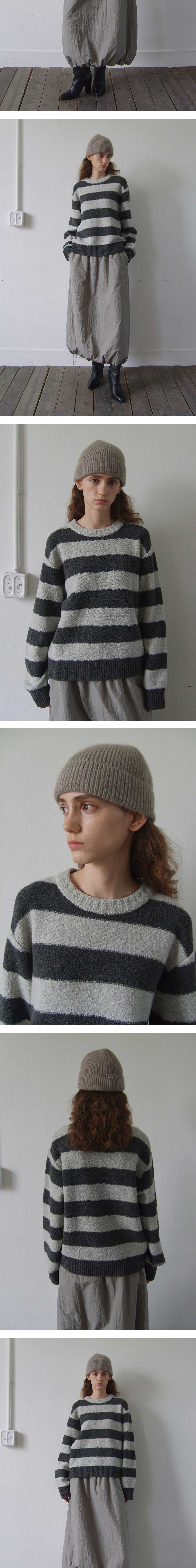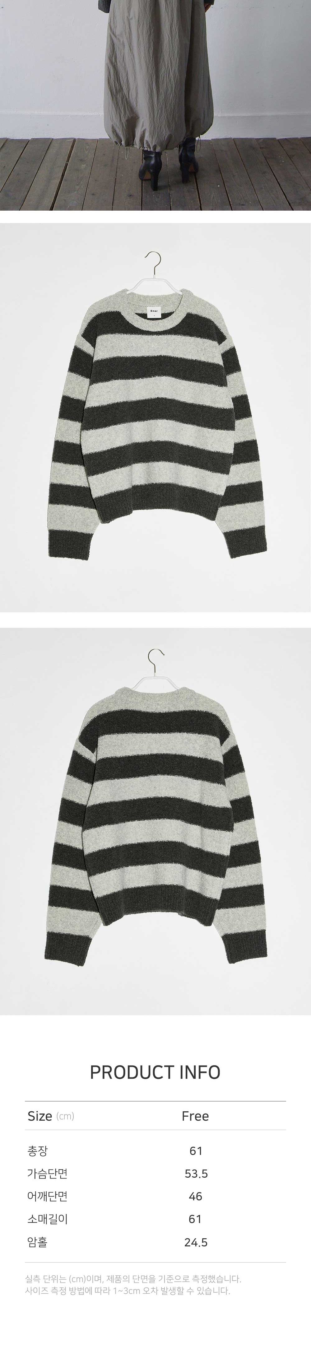 - 캐주얼한 무드의 스트라이프 패턴이 포인트인 라운드 넥 니트 풀오버입니다. - 차분하고 깊이 있는 색감으로 이루어진 그레이톤의 컬러 배색으로 클래식한 캐주얼 무드를 연출합니다. - 내추럴하게 떨어지는 릴렉스 핏 편안한 착용감을 선사하며 부클과 같은 원사를 사용해 더욱 포근한 느낌을 주었습니다. - 소매와 밑단의 시보리 단처리로 입체감 있는 실루엣이 연출됩니다.