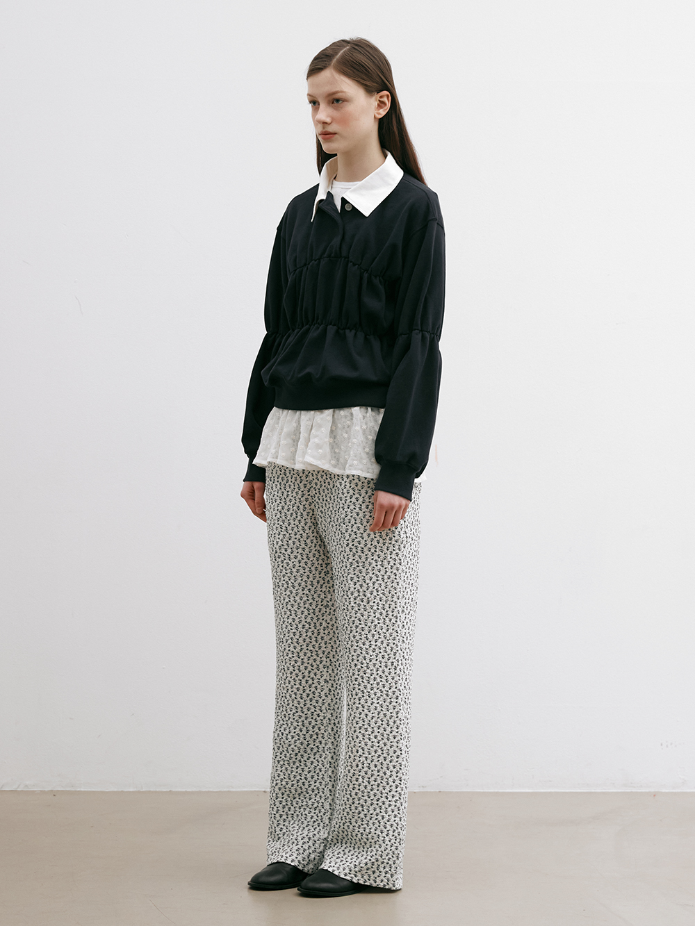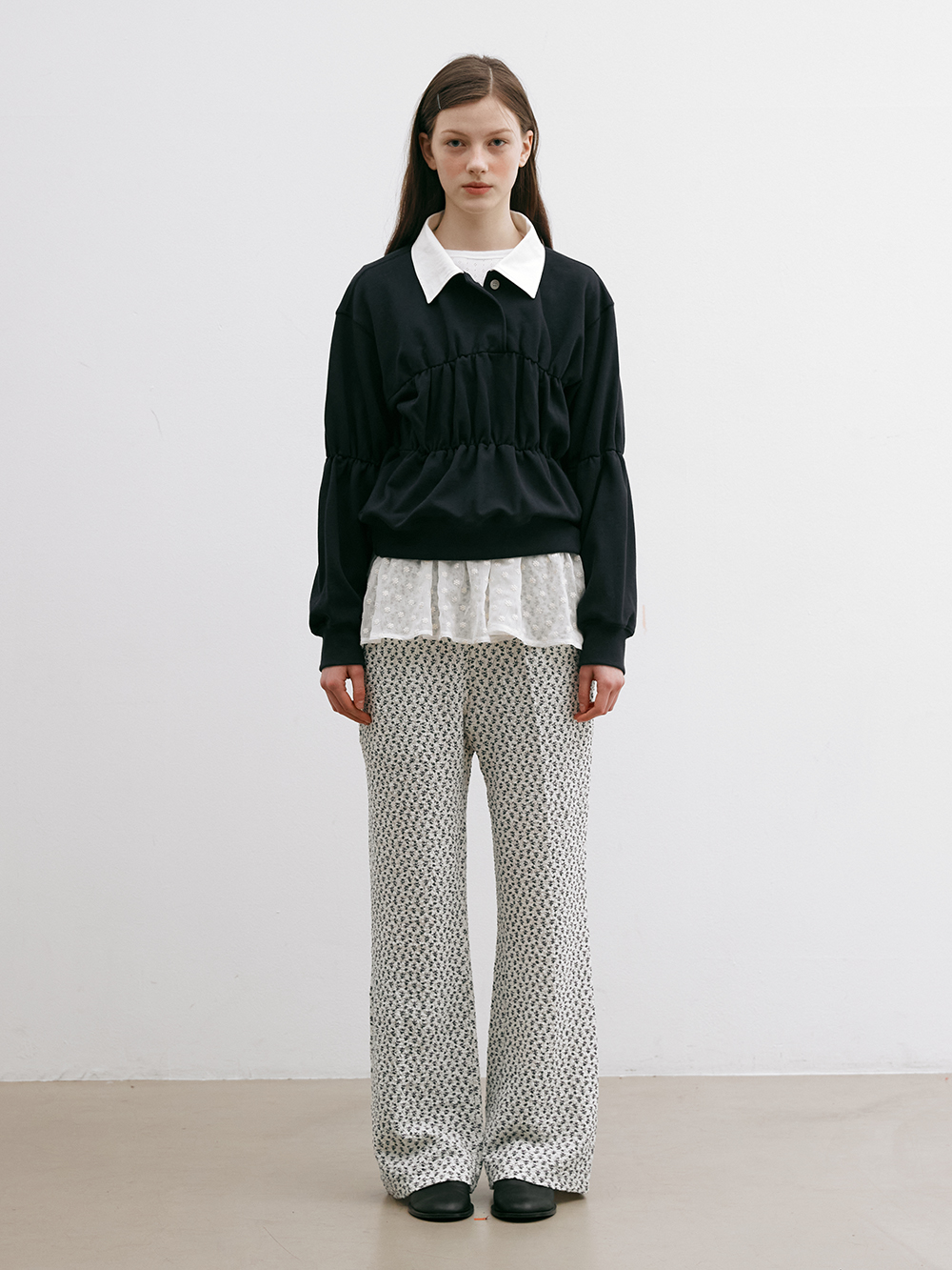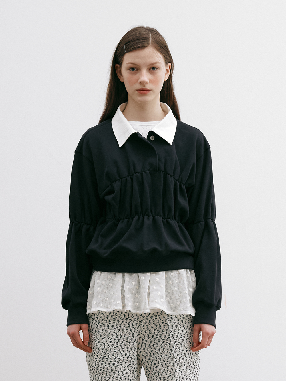 - 바이오 워싱처리된 스웨트 소재 - 바이오 워싱처리된 트윌소재의 칼라가 있는 스웨트 셔츠 - 워싱가공을 통한 부드러운 촉감 - 전 후면, 소매의 셔링디테일 - 전면부 여밈부분의 15MM 히든 너트단추 - Made in korea +COLOR NAVY, GRAY +CARE Dry cleaning , 단독 찬물세탁