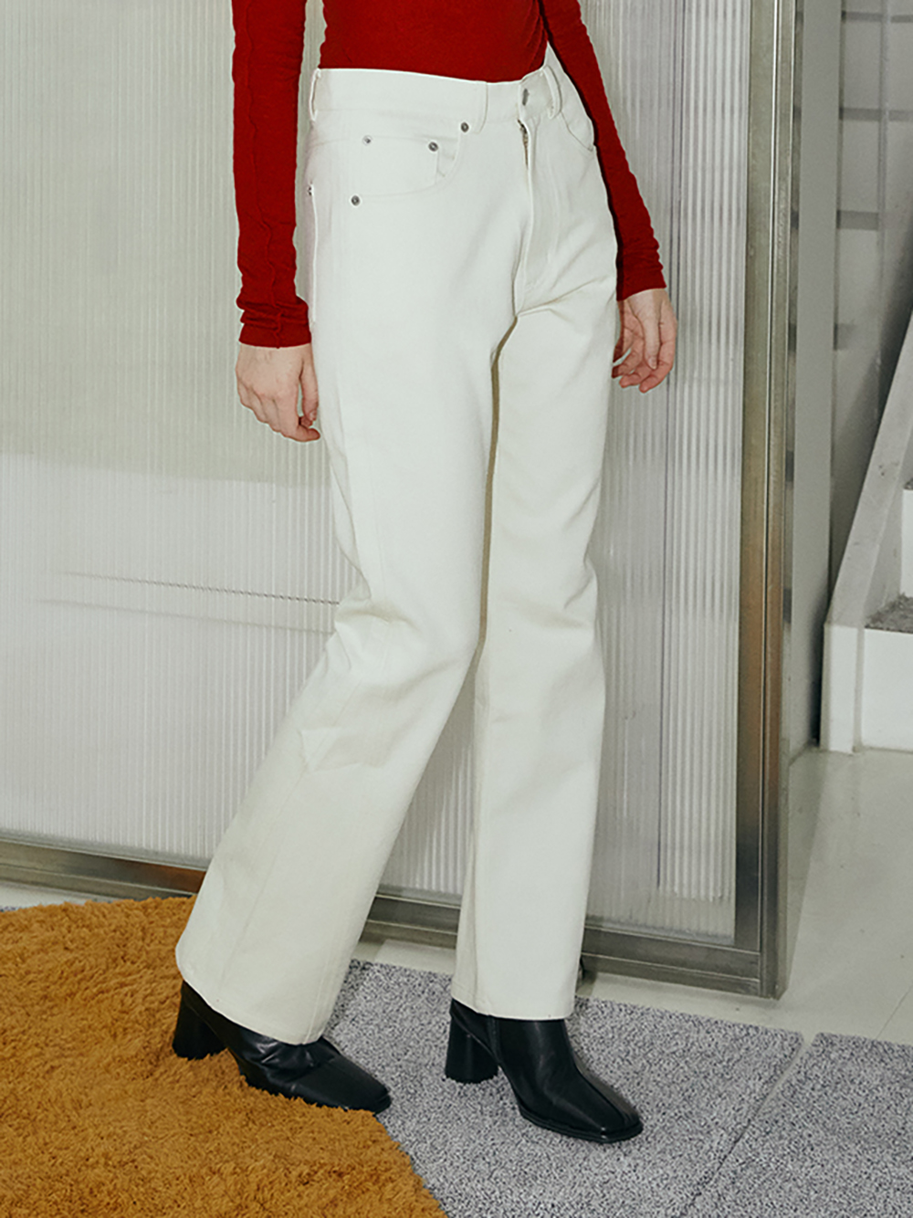 - 바이오 워싱 방식의 10수 트윌 - 측면 절개방식의 부츠컷 실루엣 - YKK사 리벳, 캔톤, 지퍼 - COTTON 100% - Made in korea +MODEL SIZE 181cm / 60kg Model(Male) wears size L 174cm / 52kg Model(Female) wears size L +COMPOSITION COTTON 100% +COLOR ECRU +CARE Dry cleaning only