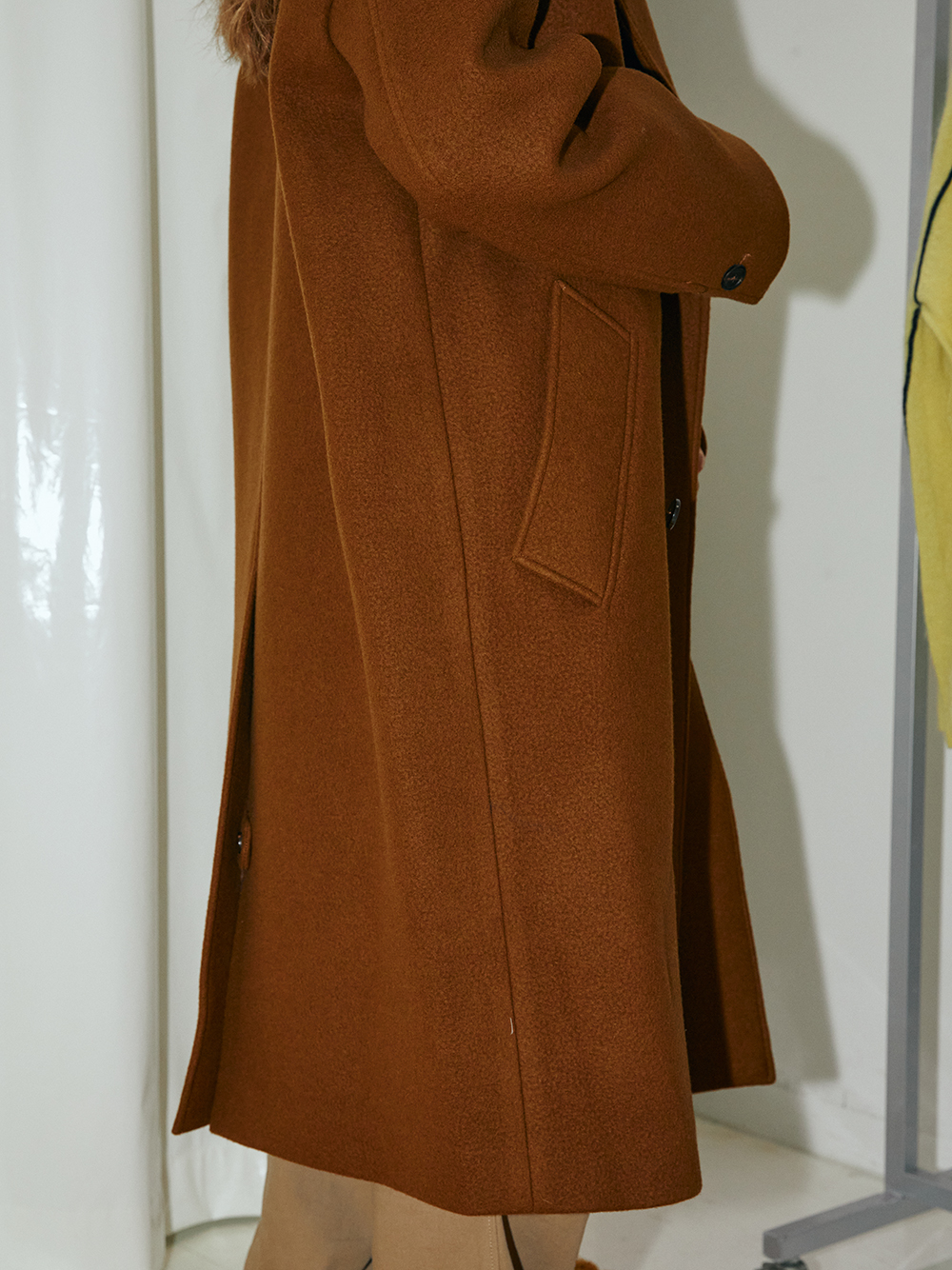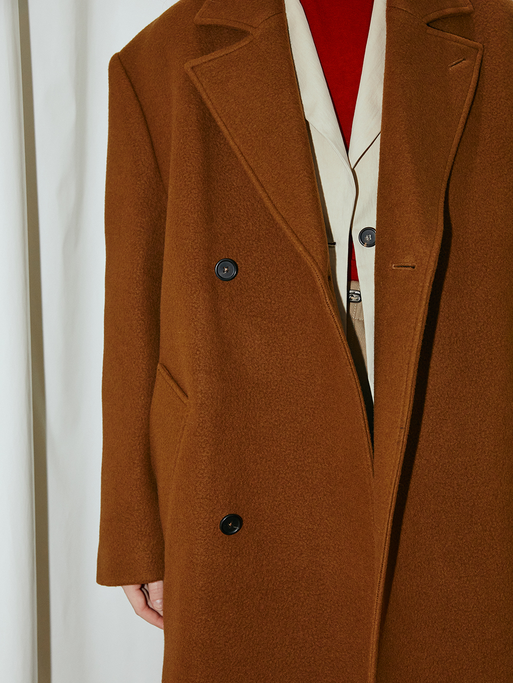 - 4mm 어깨패드의 오버랩 롱 코트 - 전면 웰트 포켓 - 전면 라펠 여밈단추 - 리얼버튼 홀 소매 - Wool,Nylon 혼방의 소재 - Made in korea +MODEL SIZE 181cm / 60kg Model(Male) wears size (모델착용사이즈는 L사이즈보다 한사이즈 큰 제품) 174cm / 52kg Model(Female) wears size (모델착용사이즈는 L사이즈보다 한사이즈 큰 제품) +COMPOSITION WOOL 90% , NYLON 10% +COLOR WALNUT +CARE Dry cleaning only