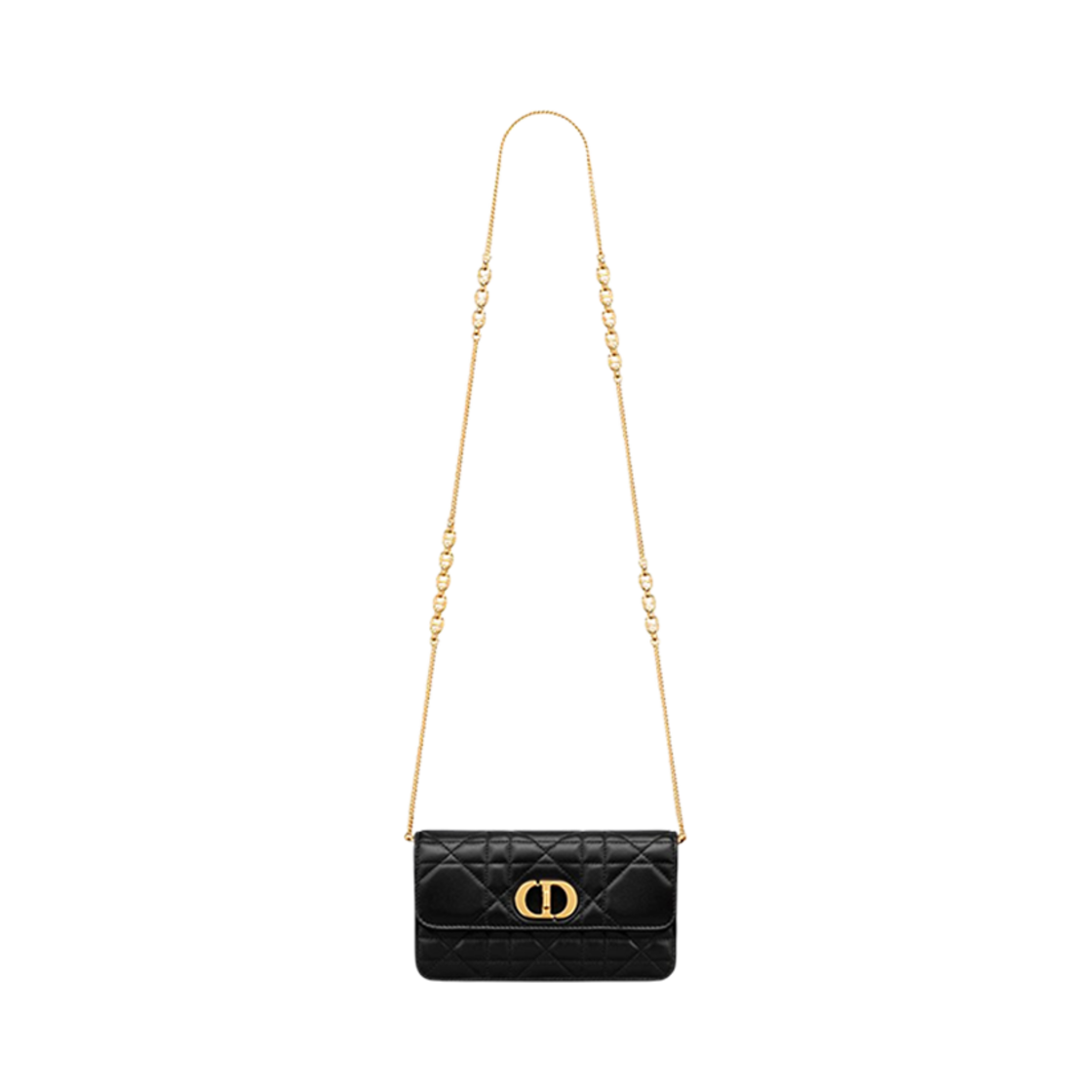 Dior Miss Caro Pouch with Chain Macrocannage Lambskin Black
