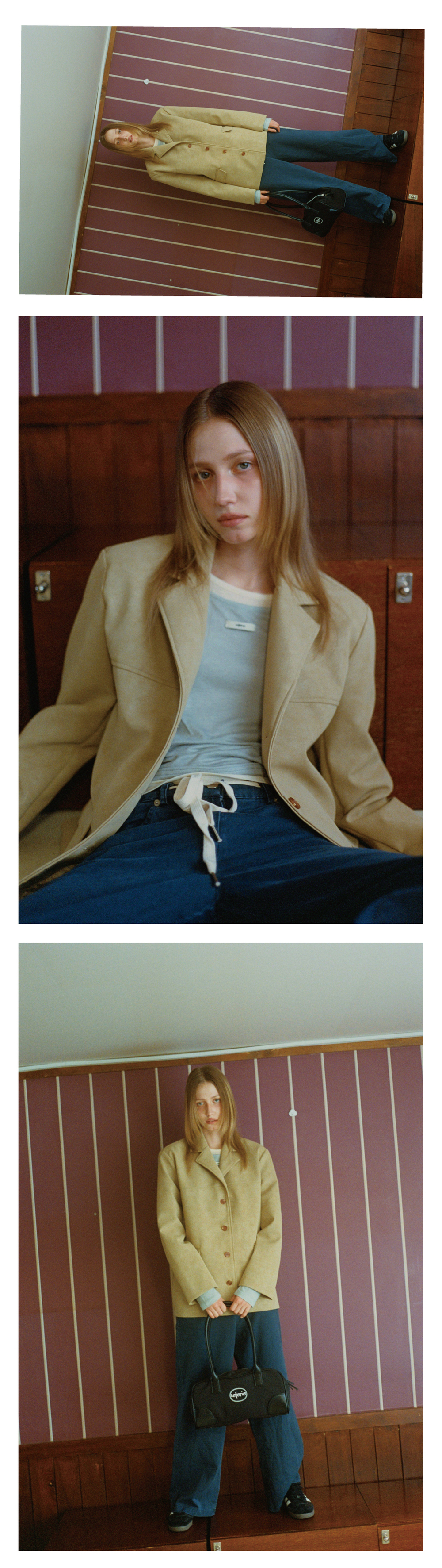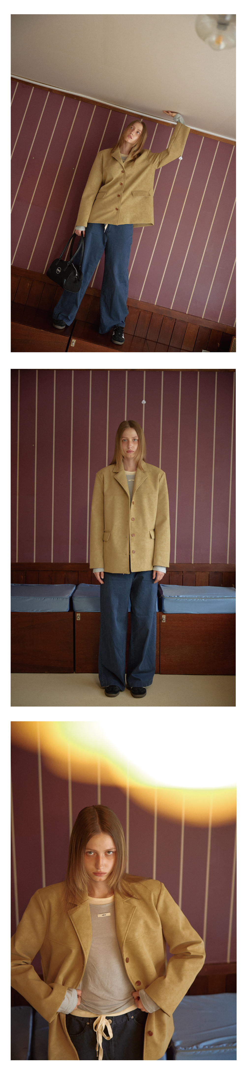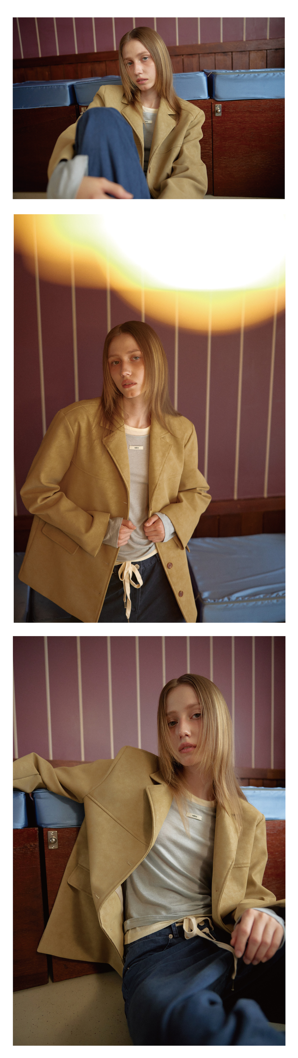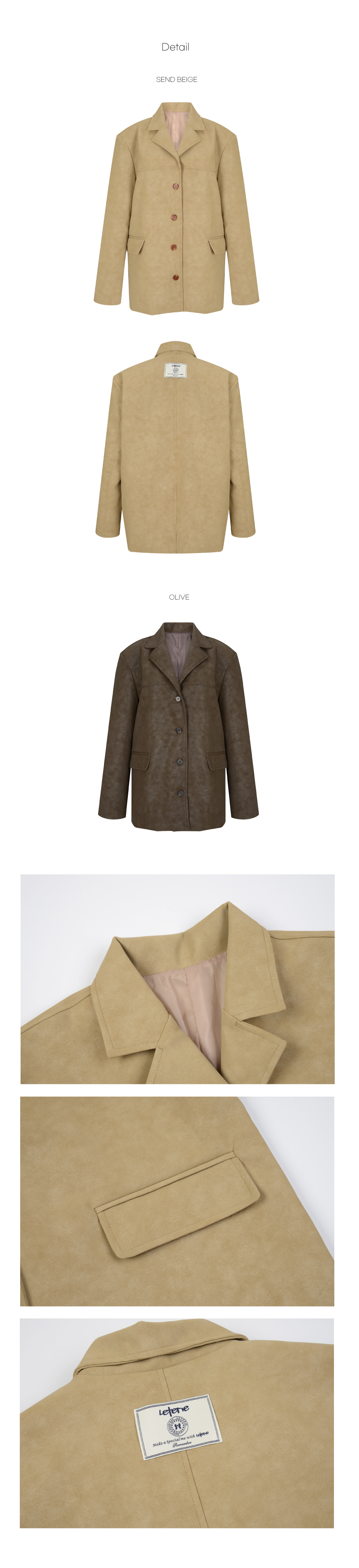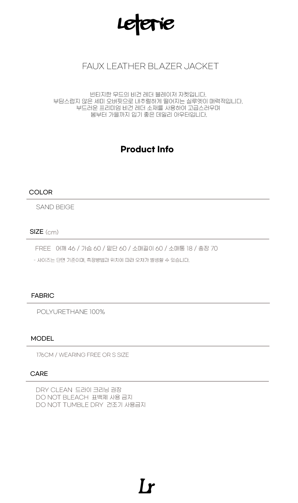 레터리 페이크 레더 블레이저 자켓 샌드베이지