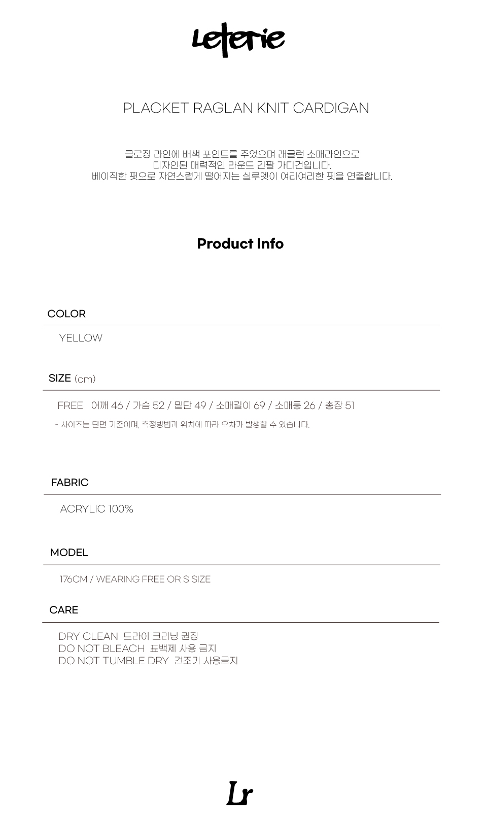 Leterie Placket Raglan Knit Cardigan Yellow