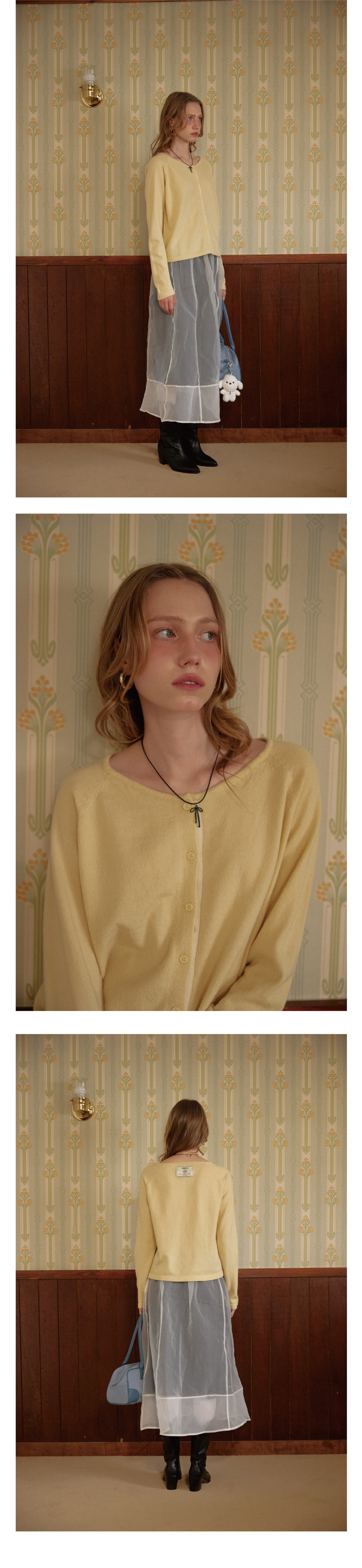 레티러 플랙켓 레귤런 니트 가디건 옐로우