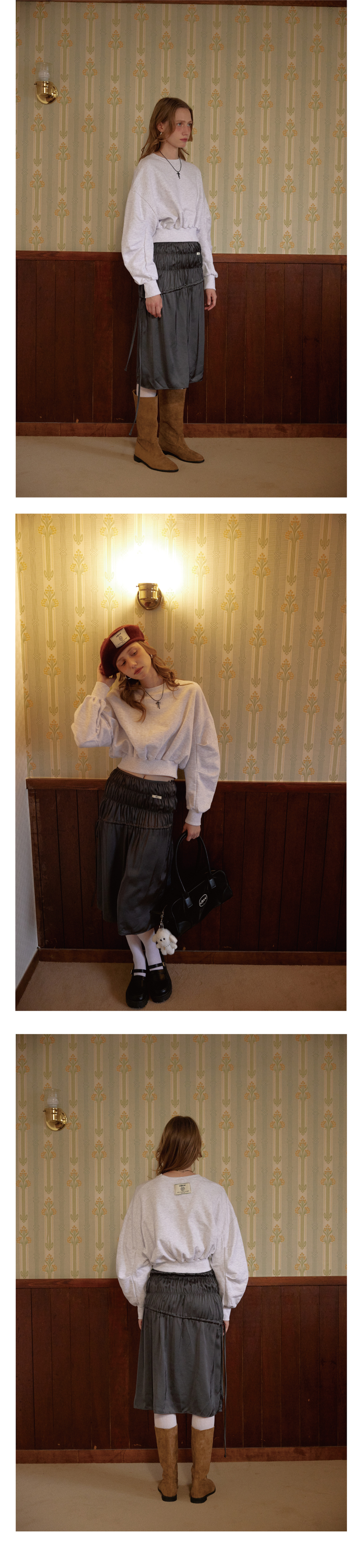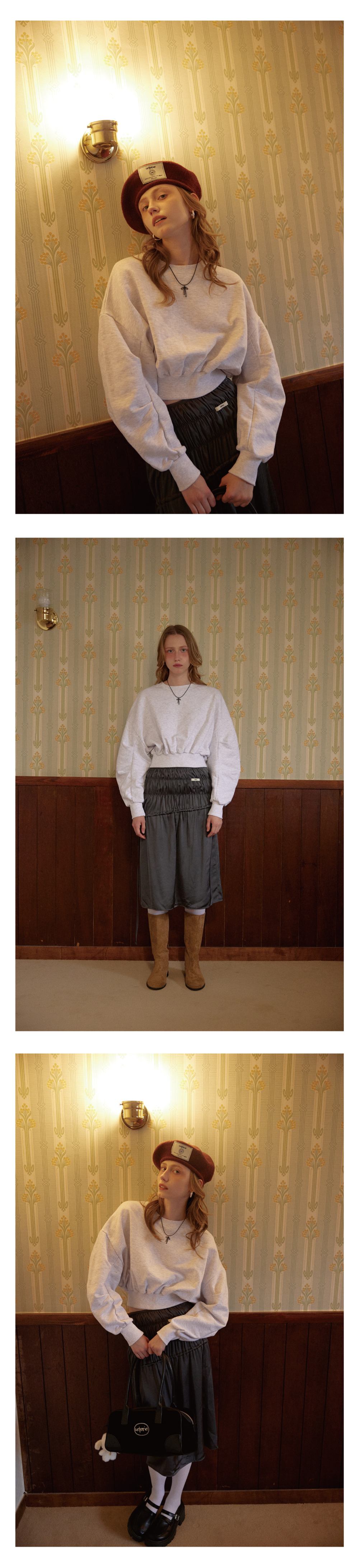 레터리 크롭 스웻셔츠 멜란지 그레이