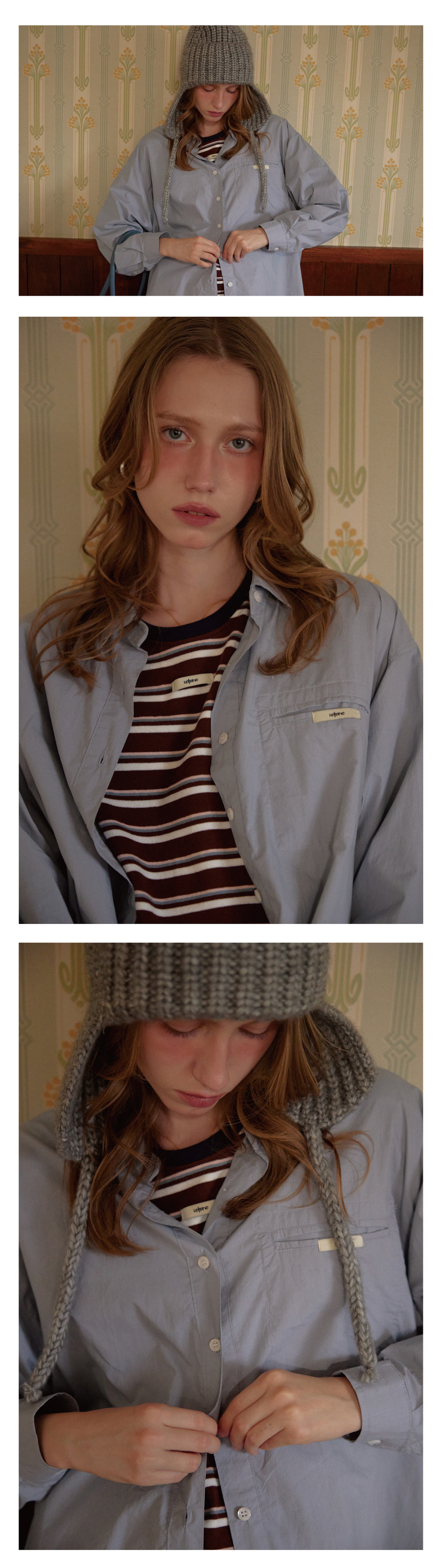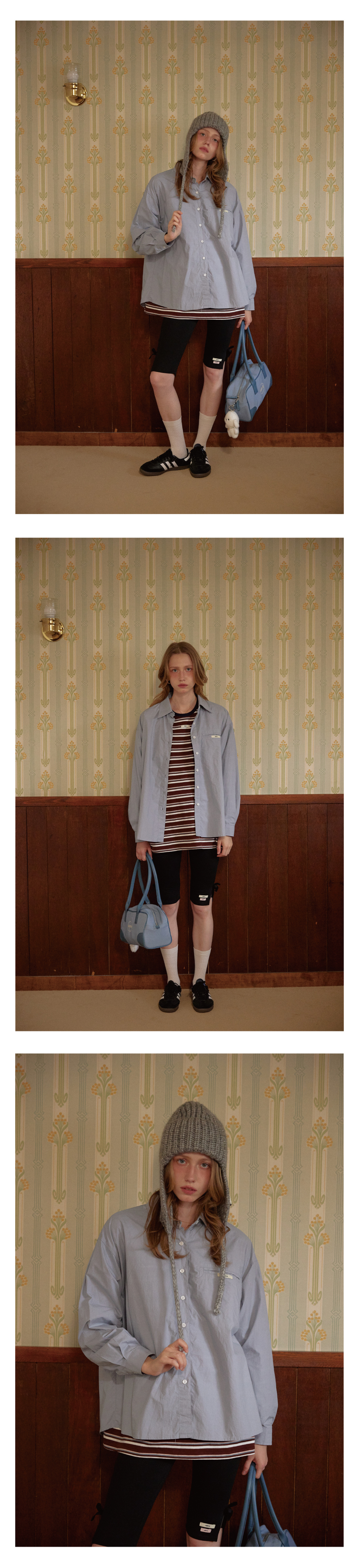 레티러 라벨 오버핏 셔츠 라이트 블루