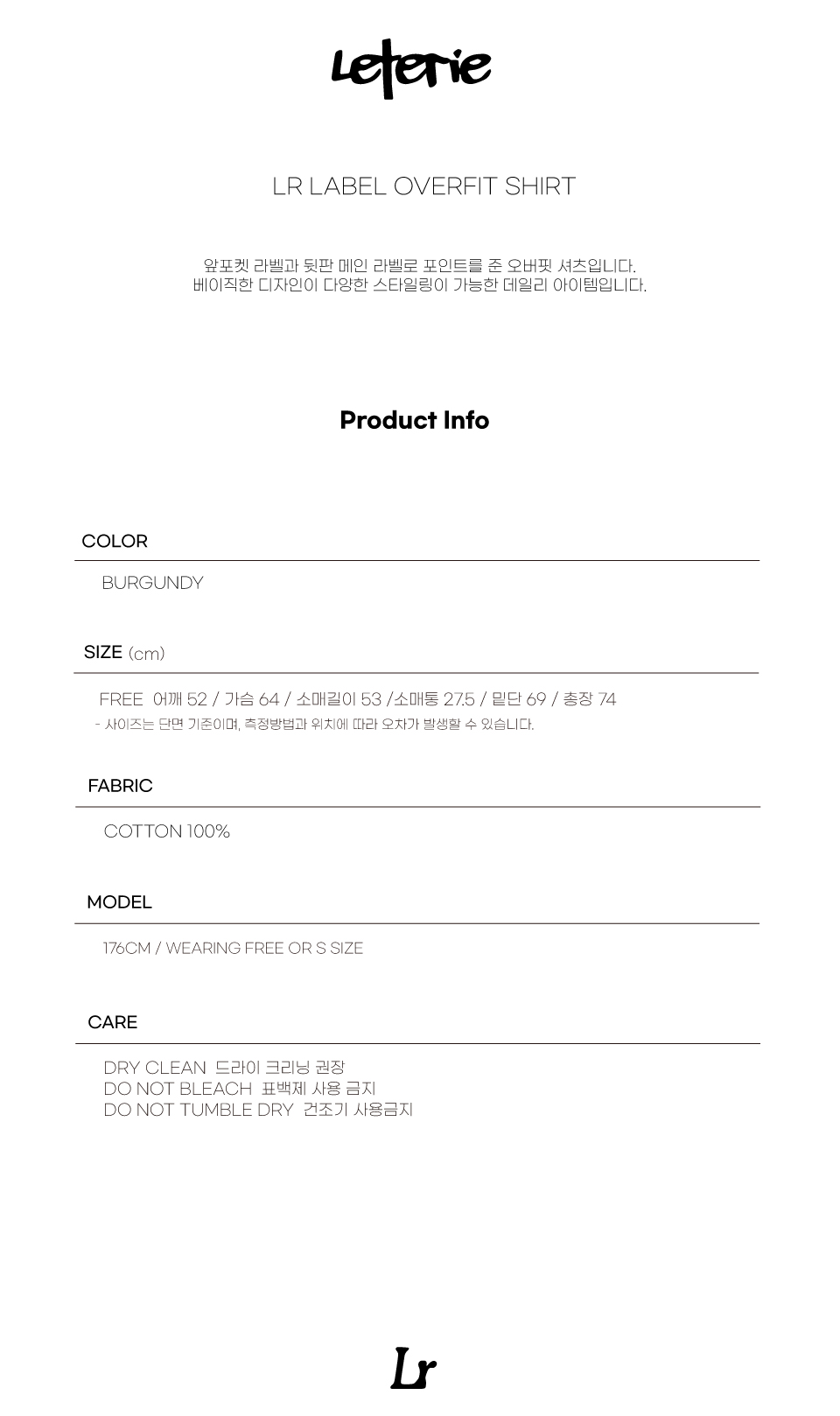 Leterie Lr Label Overfit Shirt Burgundy