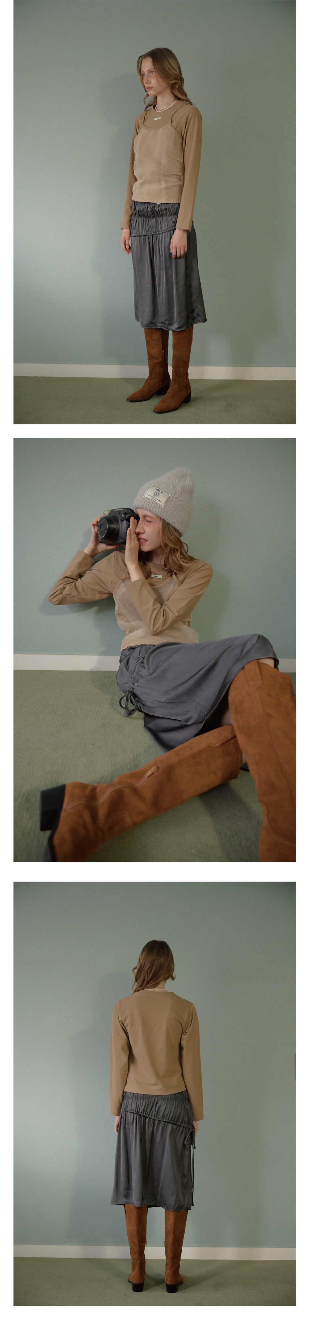 Leterie Lr Shirring Midi Skrit Grey