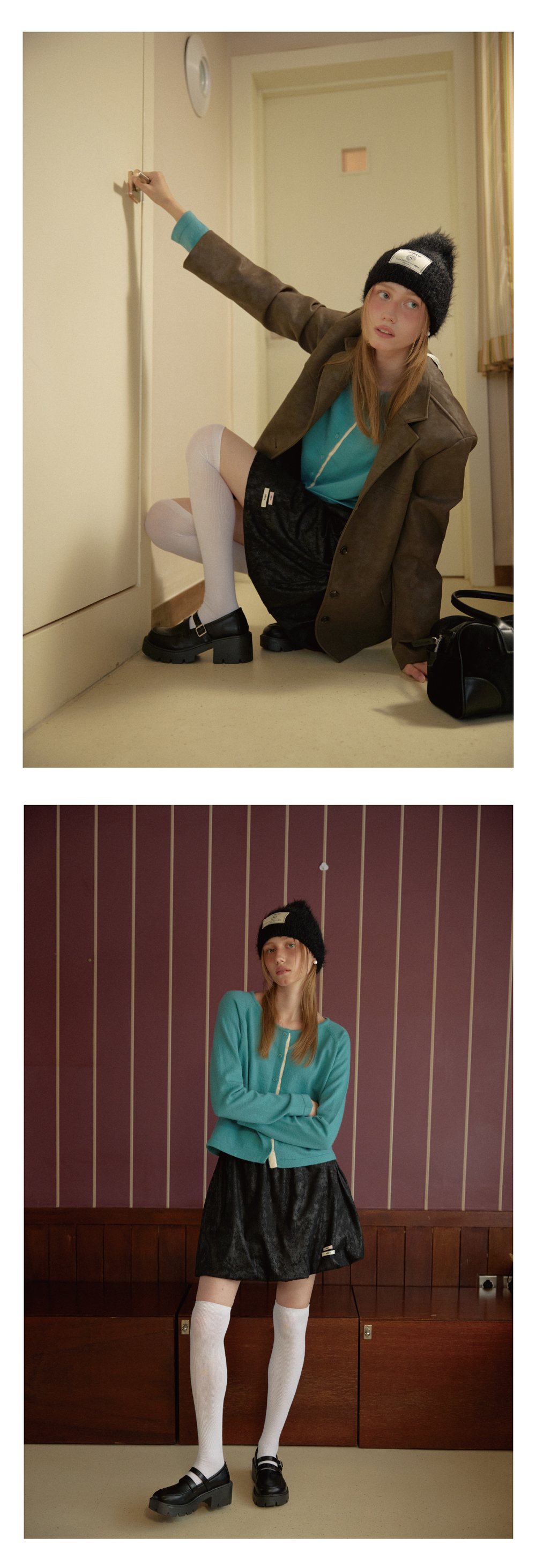 레터리 스웨이드 쉬어드 벌룬스커트 블랙